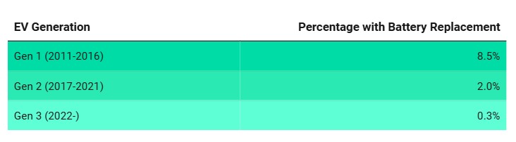 Realita je však omnoho optimistickejšia. Dnešné batérie v elektromobiloch sú výrazne spoľahlivejšie ako tie z minulosti. Podľa startupu Recurrent, ktorý sleduje stav batérií tisícok elektromobilov, je pravdepodobnosť poruchy veľmi nízka. Zároveň platí, že technológia sa stále zlepšuje a batérie vydržia čoraz viac.