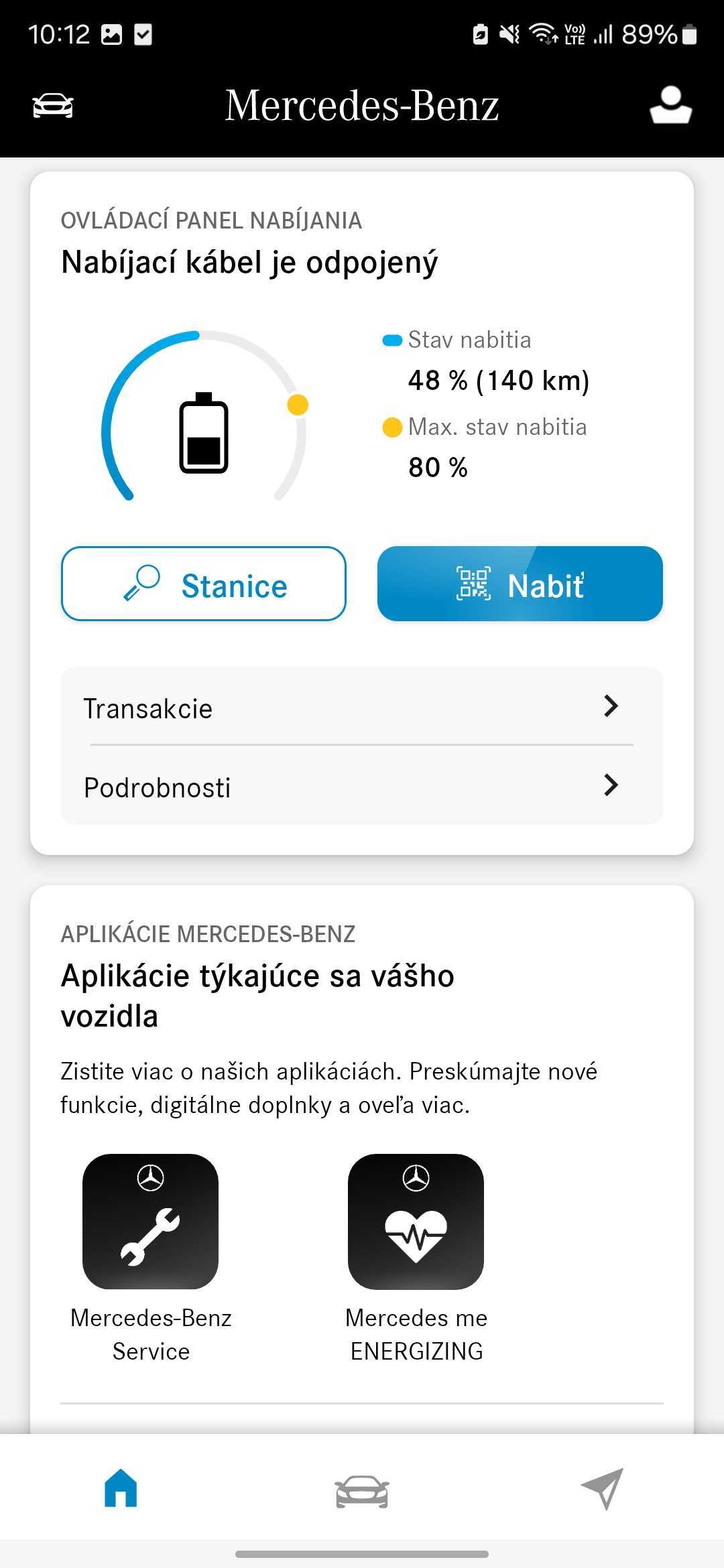 Pre plánovanie dlhších trás je aplikácia nenahraditeľná, keďže ešte pred nastúpením do vozidla vám vie vypočítať ideálnu trasu, čas príjazdu aj potrebné zastávky na nabíjanie optimalizované na čo najkratší čas. Taktiež si môžete spustiť nabíjanie bez potreby fyzickej karty. Nám sa tak párkrát stalo, že sme došli na nabíjaciu stanicu s tým, že sme si zabudli nabíjaciu kartu, kedy nás apka od Mercedesu zachránila a spustila nabíjanie za nás.