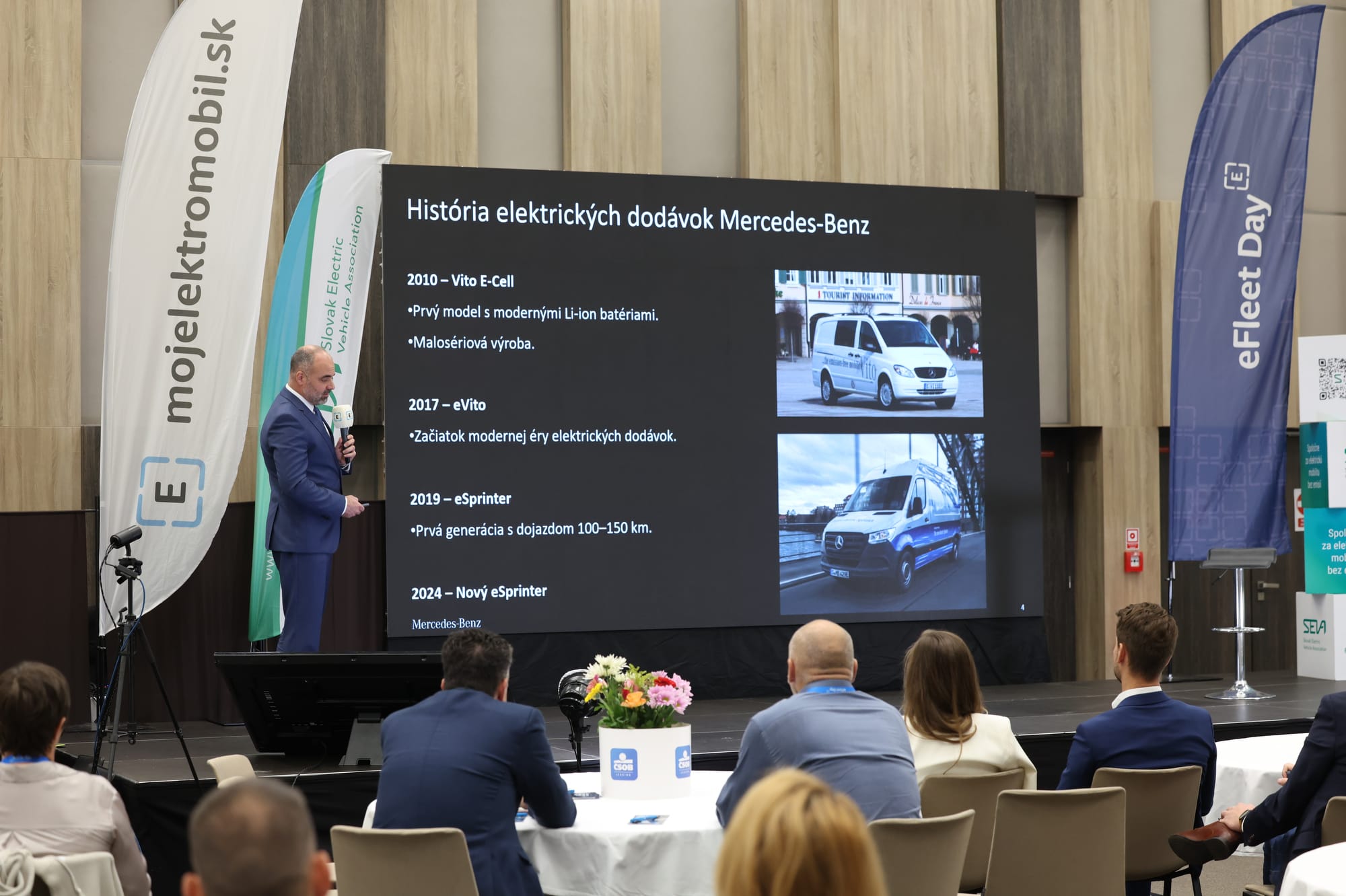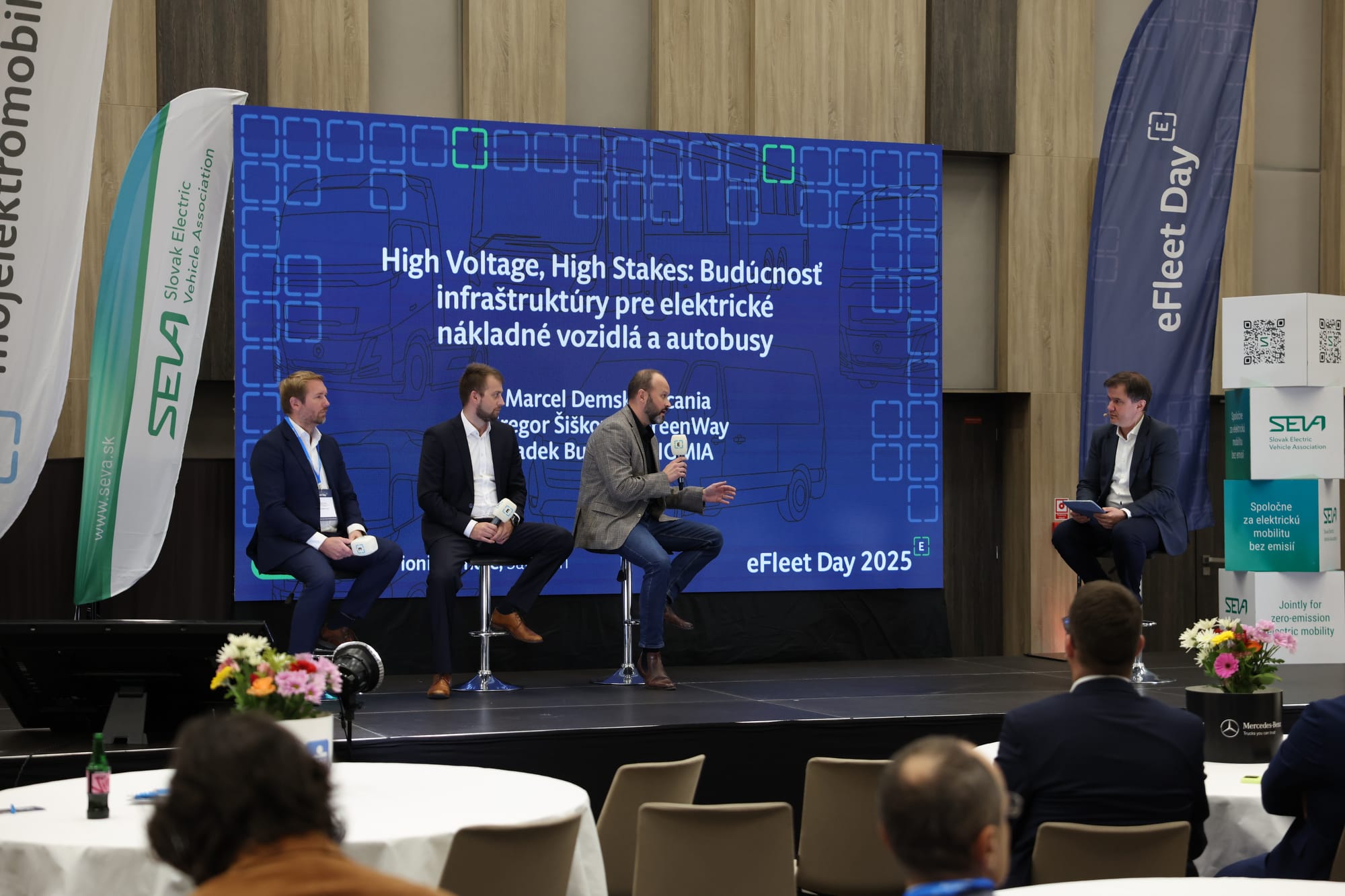 Program konferencie priniesol pestrú paletu prezentácií, panelových diskusií a prípadových štúdií, ktoré pokryli širokú škálu tém. Zástupcovia značiek ako Mercedes-Benz, Kia, ZSE Drive, ČSOB Leasing, GreenWay Slovensko a Linde Material Handling predstavili svoje riešenia v oblasti elektrických vozidiel, nabíjacej infraštruktúry, poistenia a financovania.