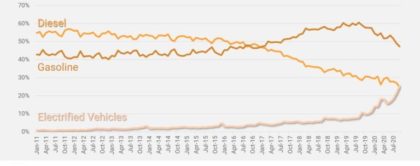 V septembri sa prvýkrát v Európe predalo viac e-vozidiel ako dieslov. Vačšina sú hybridy