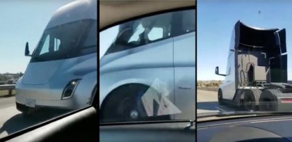 Tesla Semi zachytená na diaľnici medzi Fremontom a Gigafactory