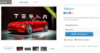 Alza naskladní pár kusov Tesly Model 3, cenu odhaduje na 29 000 € bez DPH