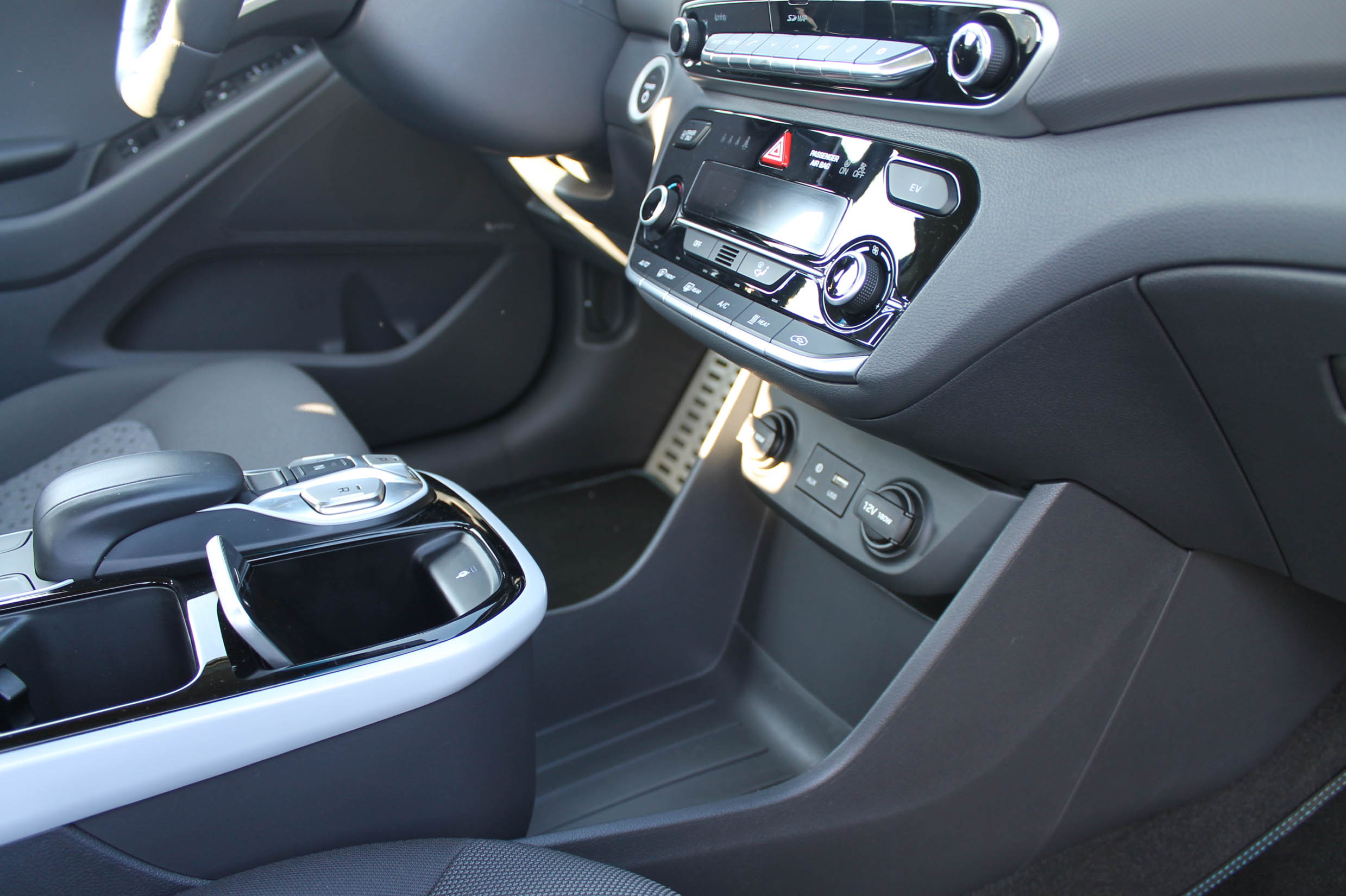 Prepínanie režimov jazdy prebieha prostredníctvom tlačidiel umiestnených na stredovom tunely. Napriek tomu, že je to dosť netradičné riešenie, veľmi rýchlo si zvyknete. Samozrejmosťou je multifunkčný volant, ktorému nič podstatné nechýba. Naopak, nájdete na ňom vec, ktorú by ste v elektromobile určite nečakali. A to „pádla“, ktoré sa bežne používajú na volenie prevodových stupňov. V Ioniqu si však nimi prepínate jednotlivé úrovne rekuperácie (viac v časti „Rekuperácia“).