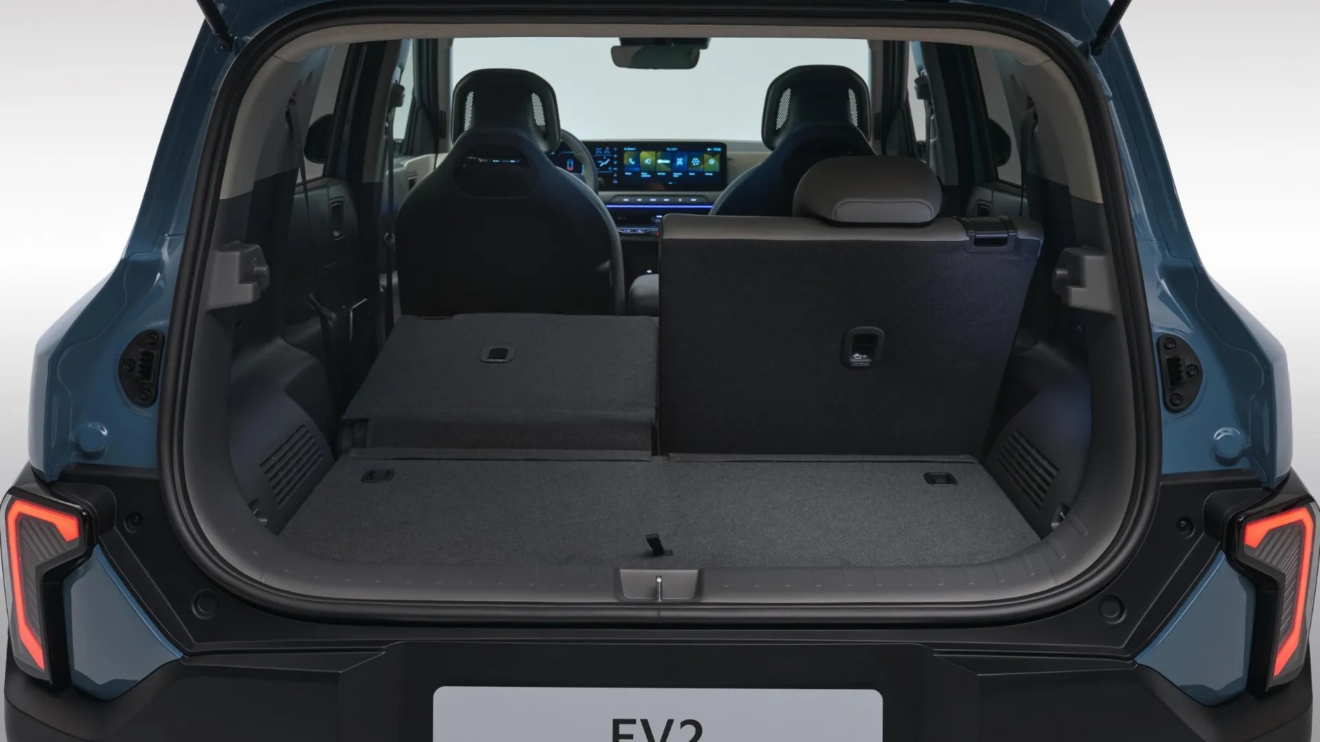 Interiér je jednou z najsilnejších stránok modelu EV2. Kia ho navrhla v duchu konceptu „Picnic Box“, ktorý sa zameriava na vzdušnosť, praktickosť a útulnú atmosféru pripomínajúcu obývačku. Kabína sa vyhýba koži a namiesto nej využíva recyklované materiály a textílie s bohatou štruktúrou, ktoré pokrývajú aj časti palubnej dosky a dverí.