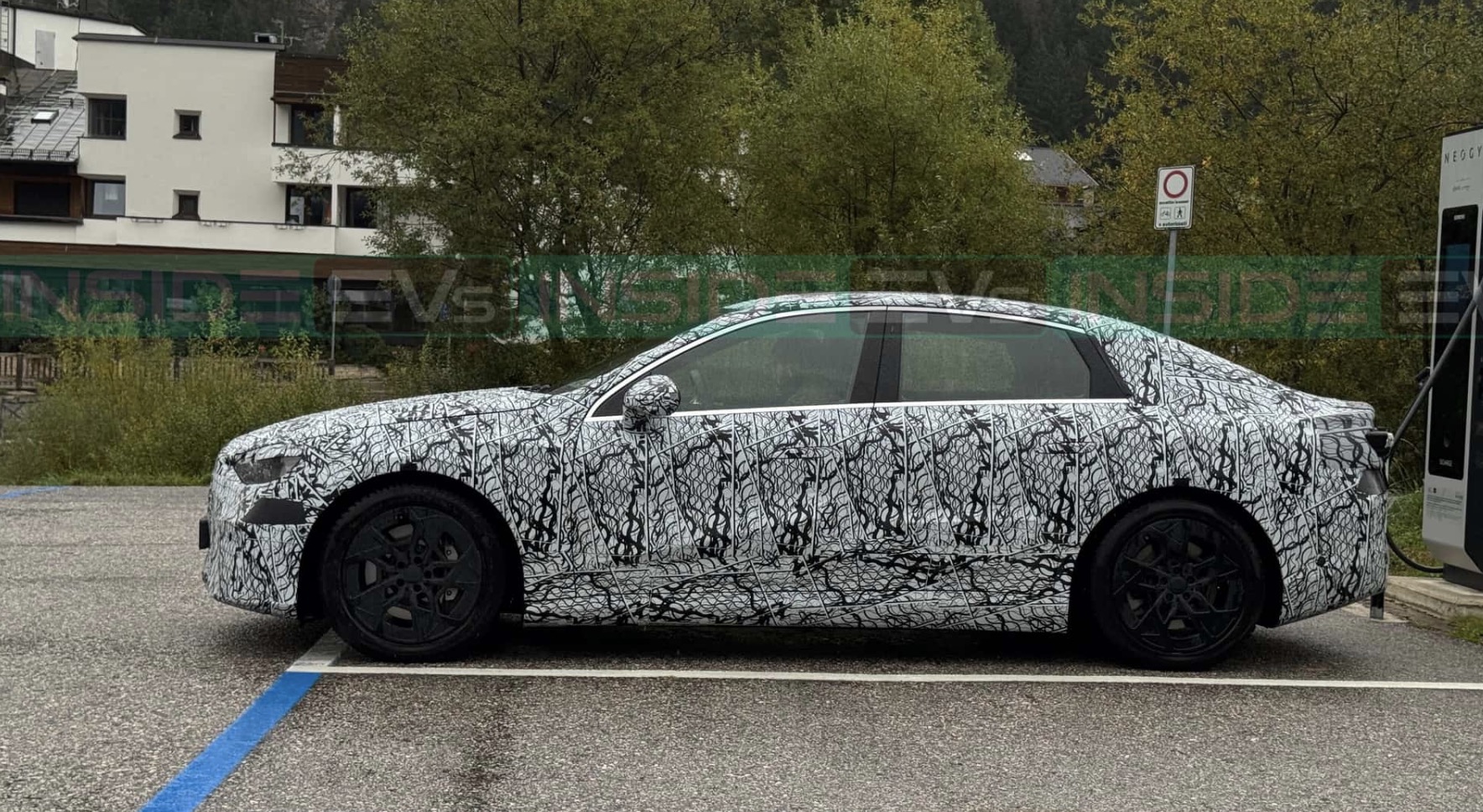 Čo sa týka dizajnu a karosérie, išlo o sériový model, takže jeho proporcie by sa už nemali meniť. Detaily síce stále kvôli maskovaniu viditeľné nie sú, no fotografie nám predsalen čo-to prezradia. Zboku neprichádzajú žiadne prekvapenia, pokiaľ ide o dizajn sedanu. A-stĺpik je bližšie k prednému kolesu, celkovo vyzerá ako väčšie CLA so vzpriamenejšou prednou časťou a menej zúženou zadnou časťou.