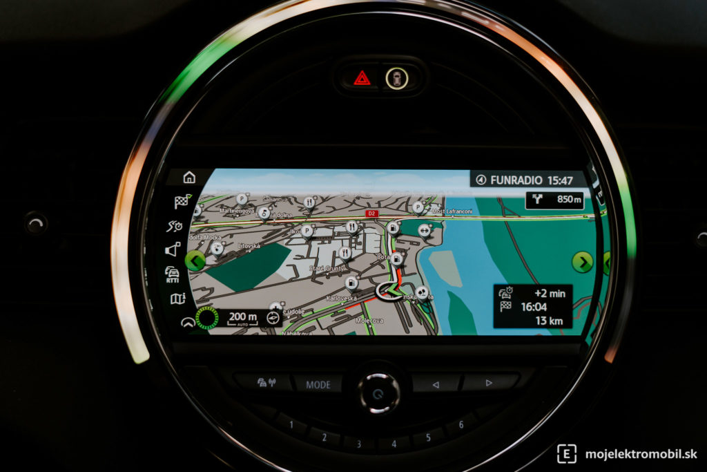 Režim Green+ už ukazuje oveľa odvážnejšie hodnoty a k dojazdu pokojne pridáva aj niekoľko desiatok kilometrov. Pri jazde som však žiadne výrazné obmedzenie nezaznamenal – dokonca aj zrýchlenie mi prišlo rovnako svižné. Avšak predpokladám, že v tomto režime auto počíta s menšou rýchlosťou a vypnutým kúrením. Takýto rapídny nárast v predpokladanom dojazde mi ale až tak prekvapivý nepríde. Systém počítania dojazdu je v Mini Cooper SE naozaj pesimistický. Väčšinu najazdených kilometrov som s týmto britským drobcom spravil na diaľnici pri rýchlosti 110 až 120 km / h, pričom zobrazovaný dojazd pred jazdou takmer odpovedal realite. Ak by som sa pohyboval výhradne po meste a okresných cestách, zobrazovaný dojazd by bol veľmi podceňovaný.