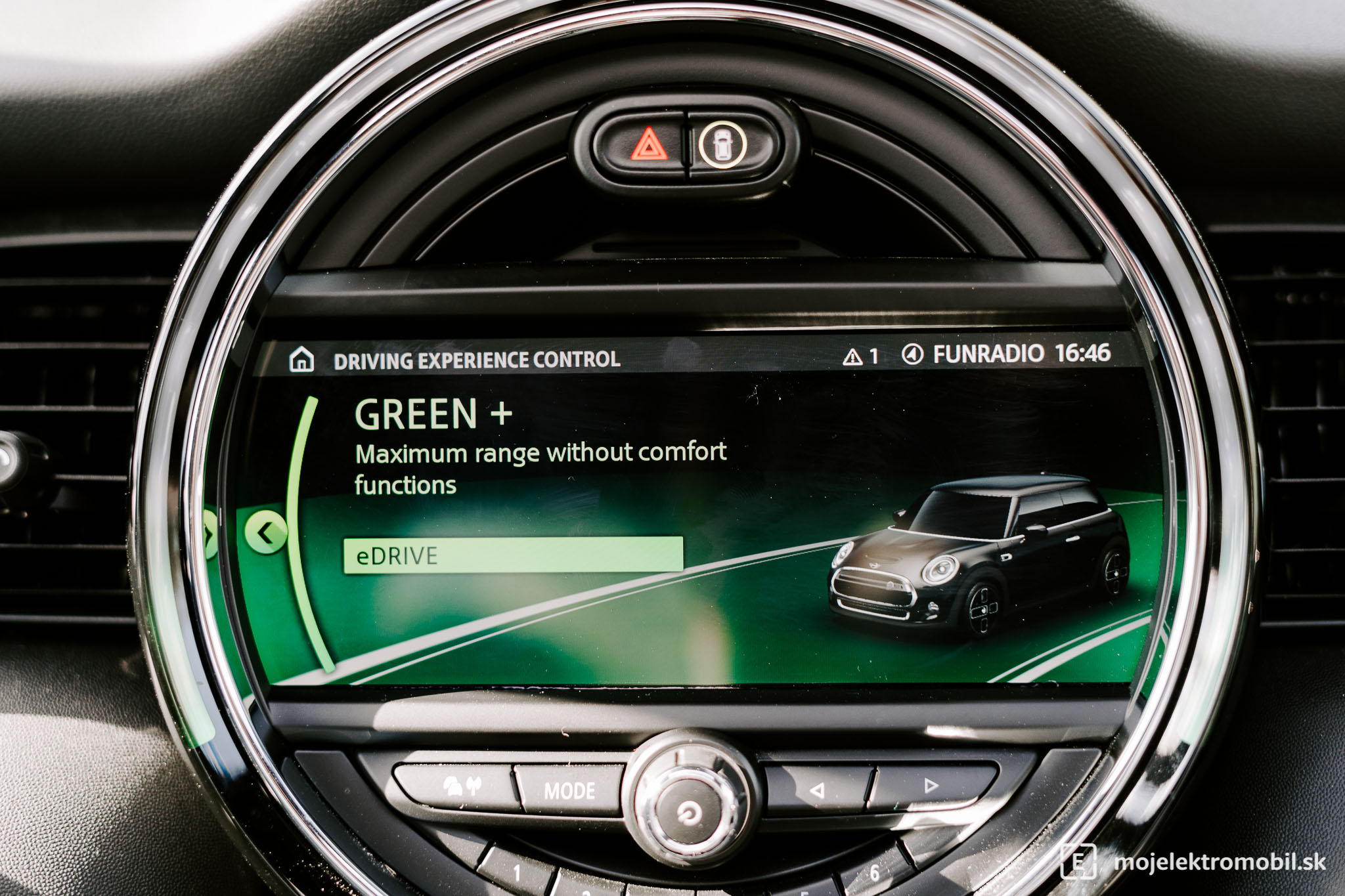 Mini Cooper SE ponúka štyri režimy jazdného štýlu, ktoré sú orientované na maximalizovanie výkonu či preferovanie vyššieho dojazdu. Konkrétne ide o režim Sport, Mid, Green a Green +. Bližší opis ani tu nie je nutný, no zaslúžia si ho zelené režimy. Rozdiel v dojazde medzi režimom Sport alebo Mid som nikdy nezaznamenal, no zvyšné dva už avizovali istý nárast. Oba zelené režimy mi v praxi prišli skôr ako pasívni asistenti, korí vás najmä napomínajú k úspornejšej jazde. Napríklad v režime Green si viete sami nastaviť, kedy vás má auto upozorniť, že idete príliš rýchlo. Rovnako vám systém dá vedieť, že prudké stláčanie plynového pedálu nie je činnosť, s ktorou prejdete pár kilometrov navyše. Green je pri počítaní dojazdu opatrnejší a k bežnému dojazdu bol ochotný prihodiť iba 5 či 10 kilometrov.