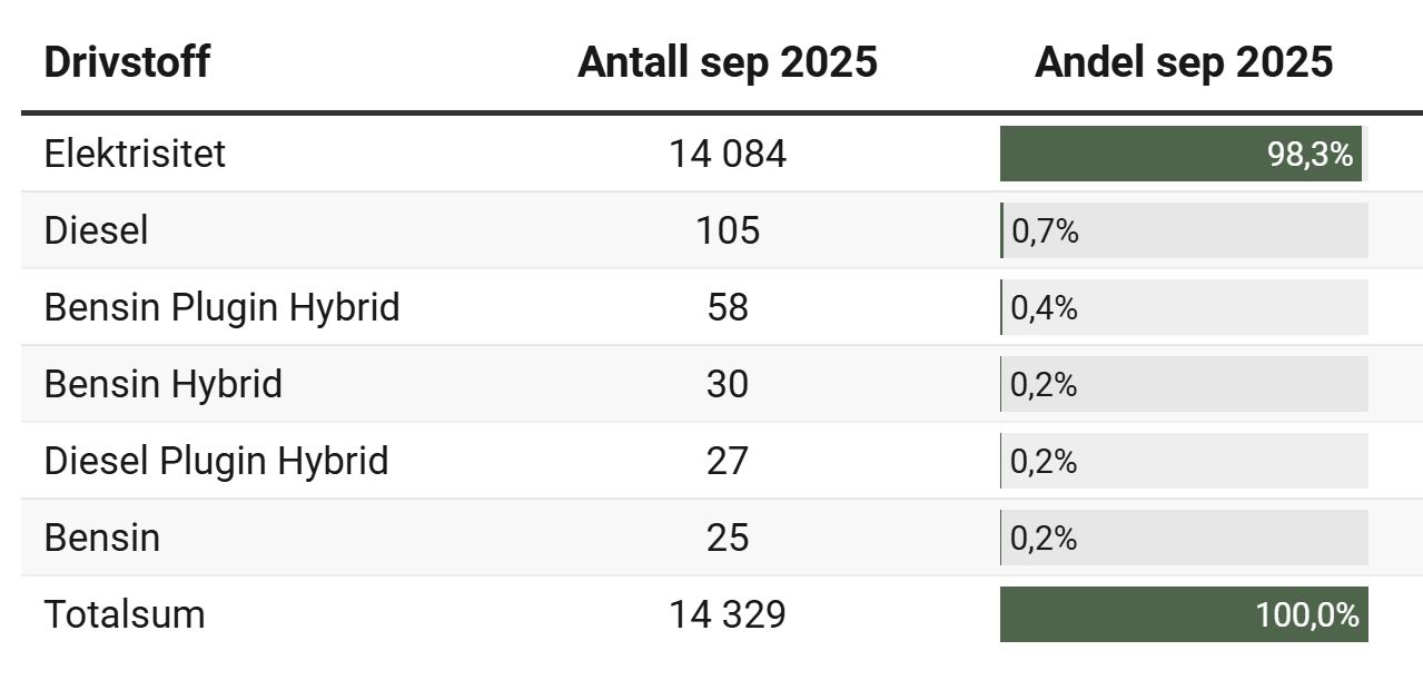 Momentálne nerastie len podiel predaných elektromobilov, ale aj objem predaných vozidiel celkovo. V septembri bolo v Nórsku zaregistrovaných 14 329 osobných áut, čo je v porovnaní s rovnakým mesiacom minulého roka 10-percentný nárast. Počas roka 2025 bolo v krajine registrovaných 113 325 nových vozidiel, čo predstavuje medziročný nárast až o 23,5 percenta.