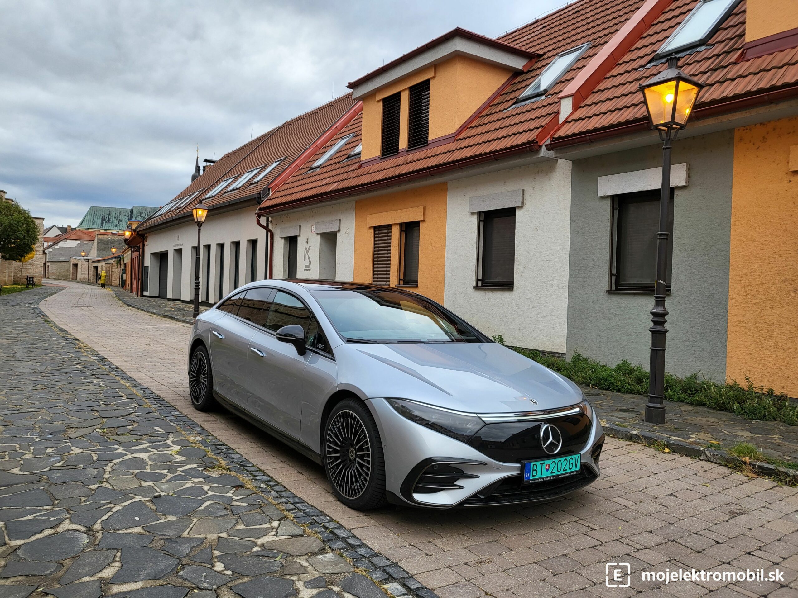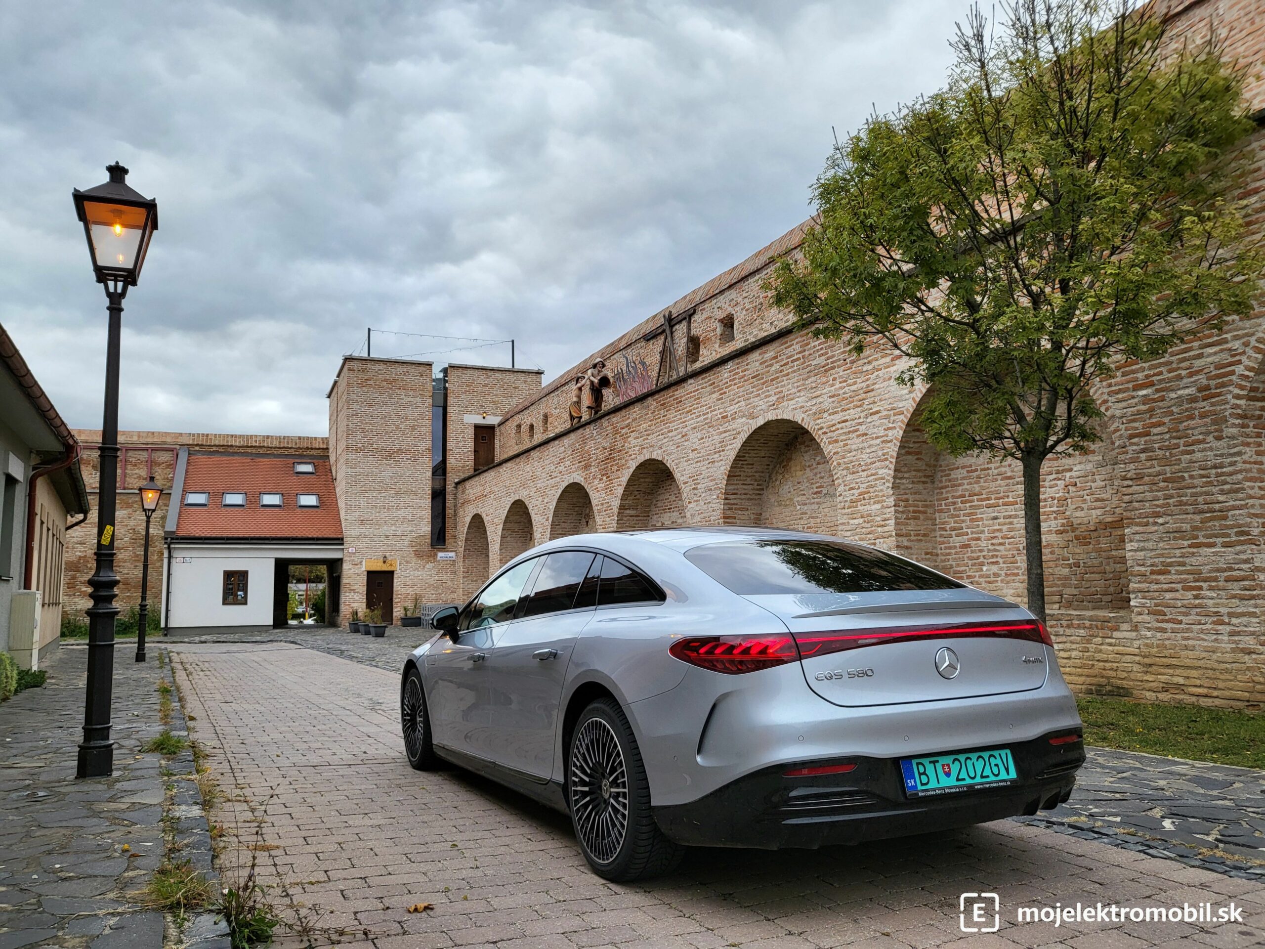 Luxusný elektromobil EQS zaujme hneď na prvý pohľad, silueta vozidla má symbolizovať natiahnutý luk. Takýto tvar navyše zlepšuje aerodynamické vlastnosti vozidla, čo prispieva k celkovej nižšej spotrebe na cestách. Na vozenie som dostal model EQS 580 4MATIC, čo je model s kapacitou batérie 107,8 kWh. Podľa papierových hodnôt by malo EQS prejsť vzdialenosť 649 km.