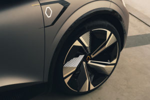 Ďalšie prvky jedinečných vlastností sa objavujú zvonku, a to napríklad na karosérií či kolesách. Samozrejmosťou sú jedinečné tvary definujúce identitu značky Renault, a to z každého uhla. Novinky sa však v najväčšej miere prezentujú v prednej časti. Ide napríklad o celistvú prednú masku s podsvietením, vrátane svietiaceho loga. Nasávanie sa nachádza v dolnej časti. Podstatné úpravy museli prísť aj na strane kolies, ktoré majú len minimálne previsy a zároveň sú doplnené aerodynamickými vložkami.