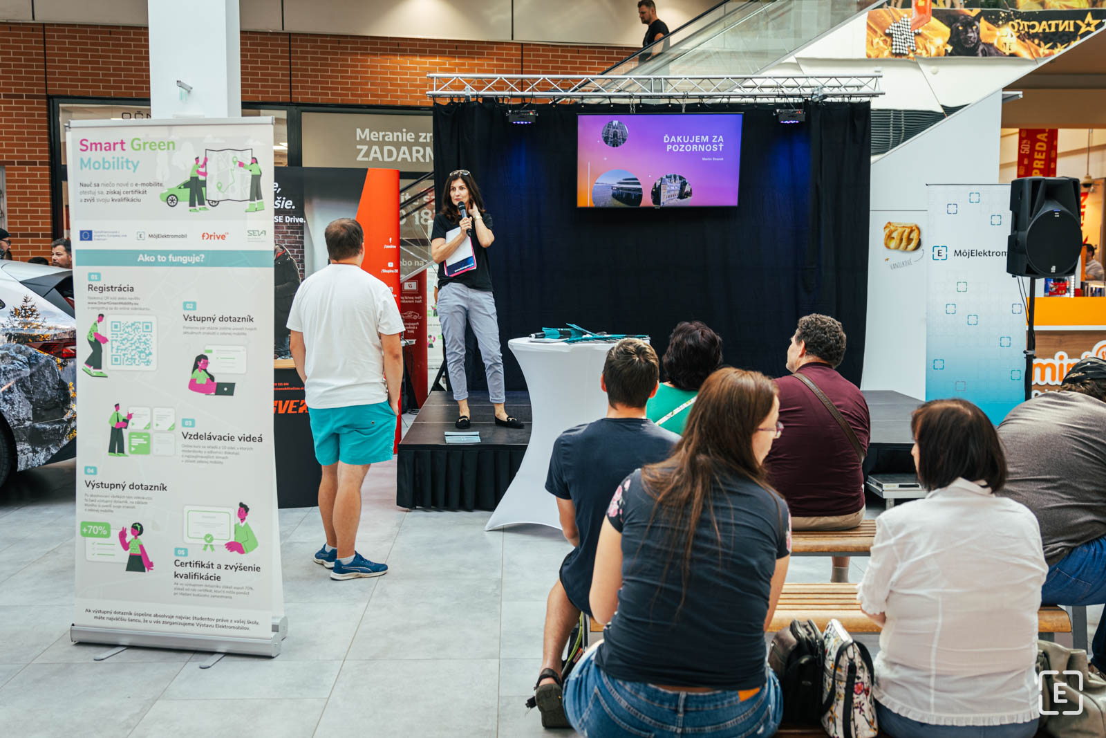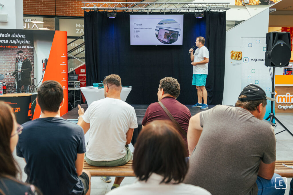 Sobotný program spestrili prezentácia a diskusie na aktuálne témy – pohľad na aktuálnu ponuku elektromobilov, cestovanie po EÚ s elektromobilom či prierez riešeniami pre nabíjanie elektromobilov.
