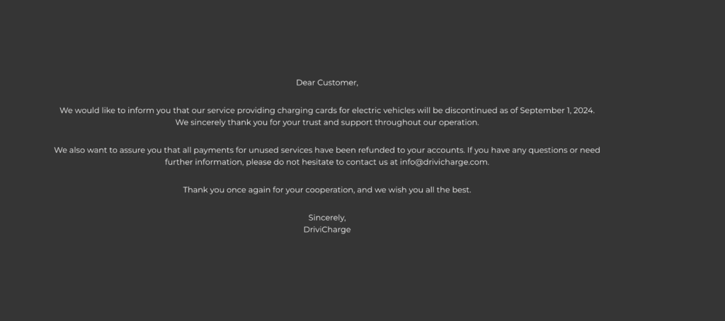 „Na základe analýzy dostupných informácií spoločnosť GreenWay Infrastructure vyhlasuje, že Drivicharge nie je naším roamingovým partnerom a nemáme s takouto značkou alebo firmou uzavretú žiadnu dohodu o poskytovaní nabíjacích služieb na našich staniciach.“