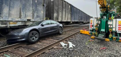 Autonómne riadenie nestačilo, zasiahol vlak. Tesla skončila na koľajniciach