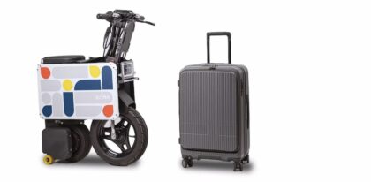 Toto je elektrický skúter, ktorý má po zložení veľkosť kufra