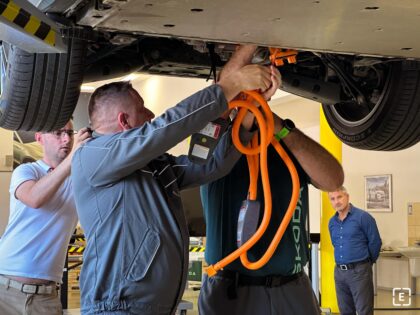 Takto vyzerá demontáž akumulátora elektromobilu v servise Škoda