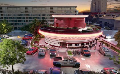 Tesla Supercharger s autokinom aj reštauráciou? Stavba rýchlo napreduje!