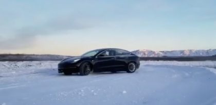 Pozrite sa na zábery, kde Tesla Model 3 driftuje na snehu počas testovania | VIDEO