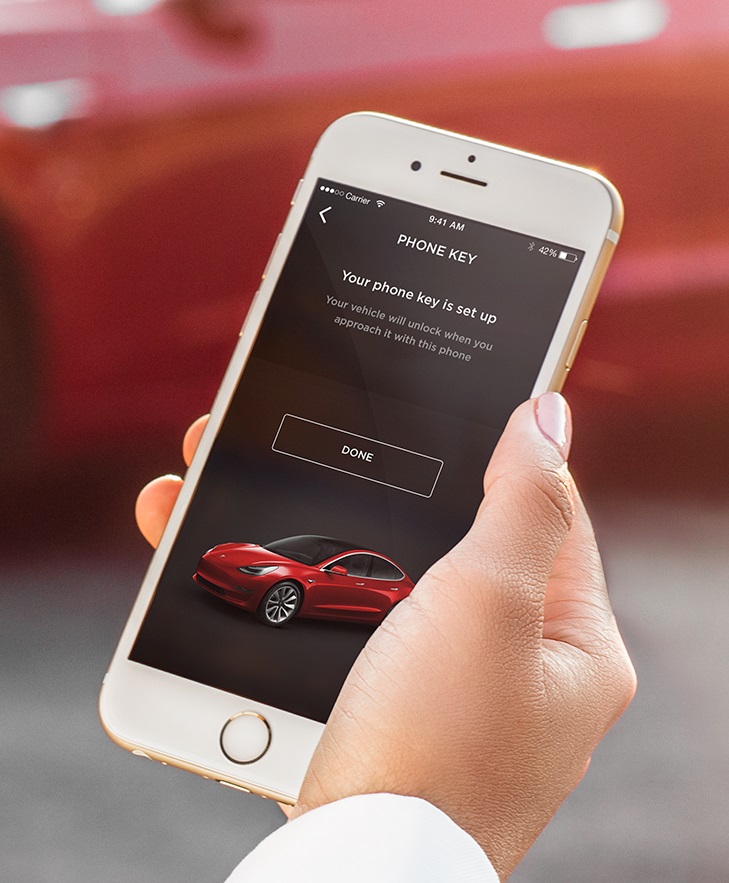 Kým pri starších modeloch Tesly je pre odomknutie vozidla nutný vstup do aplikácie, v prípade Modelu 3 sa stačí k vozidlu priblížiť. Komunikačný systém vozidla totiž detekuje špecifický šifrovaný Bluetooth signál, ktorý vysiela aplikácia prostredníctvom mobilného zariadenia.