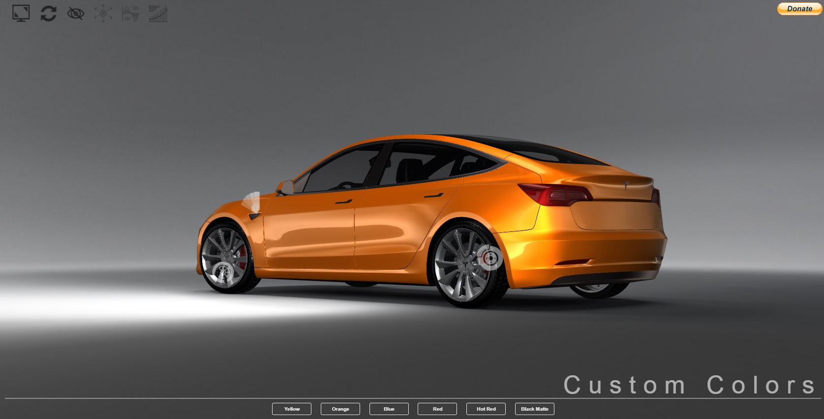 Používateľ Facebooku, registrovaný ako Bartolome Threedeeologist, vytvoril webovú aplikáciu s pokročilým 3D modelom Tesly Model 3. Tu je možné ľubovolne otáčať, približovať či odďaľovať a samozrejme „obliekať do rôznych kabátov“. Model 3 si tak môžete pozrieť (nielen) vo všetkých oficiálnych farbách, obuť ju do štandardných či športových kolies rôznych odtieňov, či si zvoliť farbu brzdových strmeňov. Okrem toho si môžete zvoliť množstvo detailných pohľadov na jednotlivé časti vozidla.