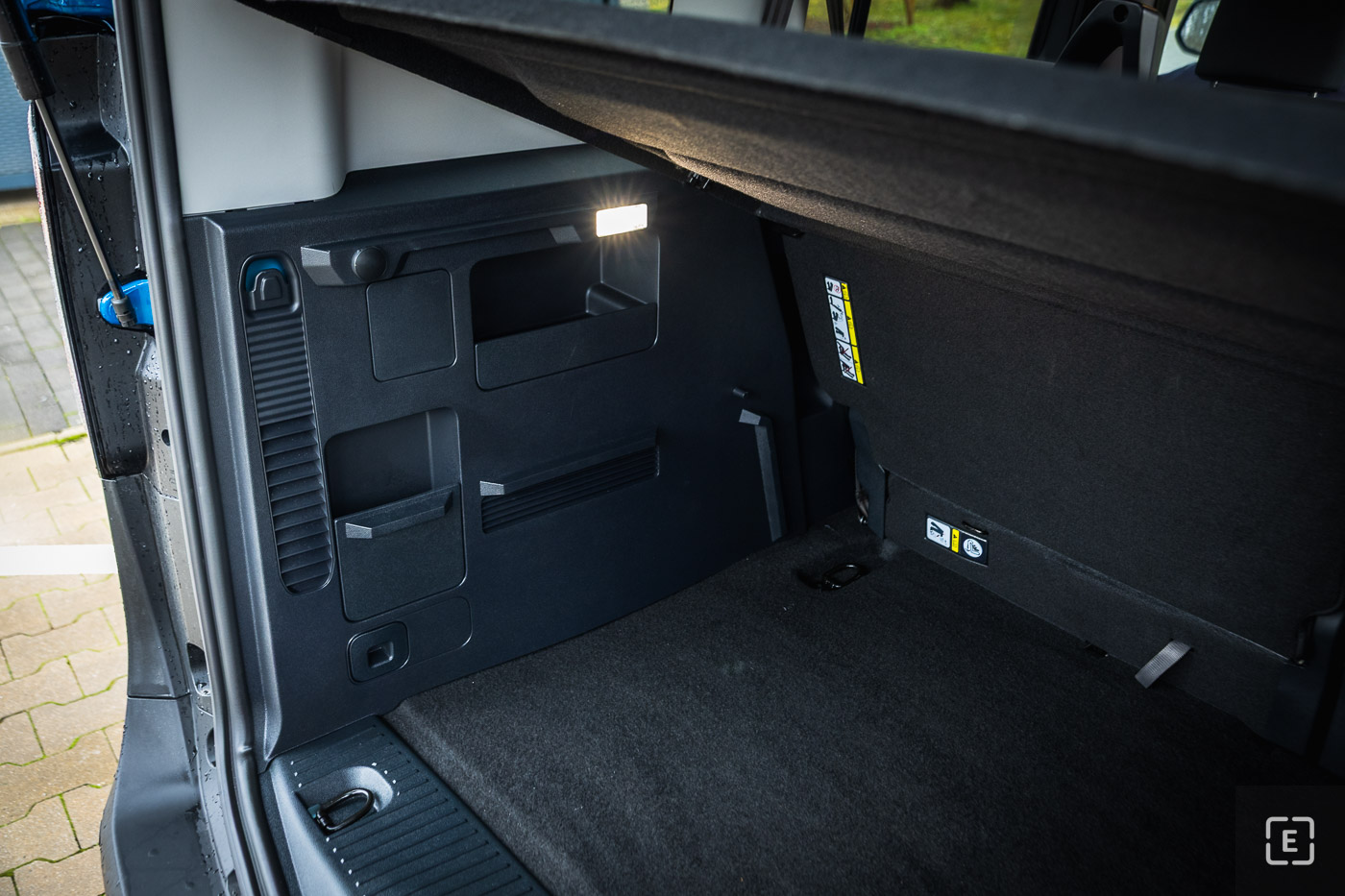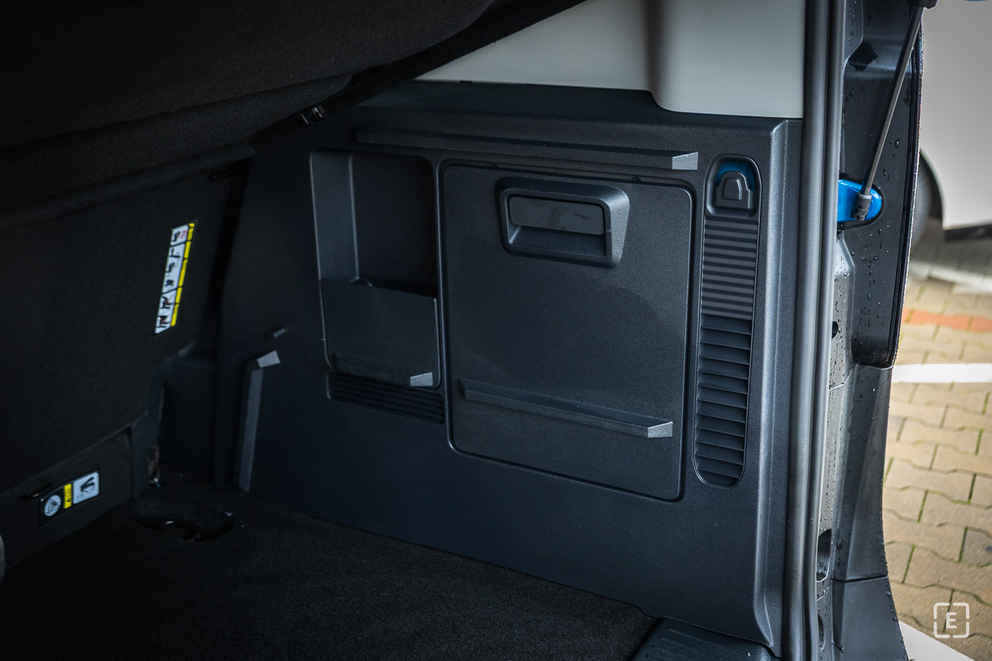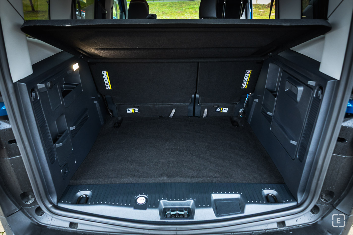 Ak ale naložíte auto až po strechu, získate 1 188 litrov. A ak sklopíte zadné sedadlá, dostanete jaskyňu s objemom 2 162 litrov. Je tu však jedno „ale“ – po sklopení sedadiel nevznikne úplne rovná plocha, sedadlá sa len preklopia dopredu. Inak sa to ale ani nedá, ak chceme maximalizovať objem kufra v štandardnej podobe. Elektrický pohon navyše neubral ani z užitočnej hmotnosti.