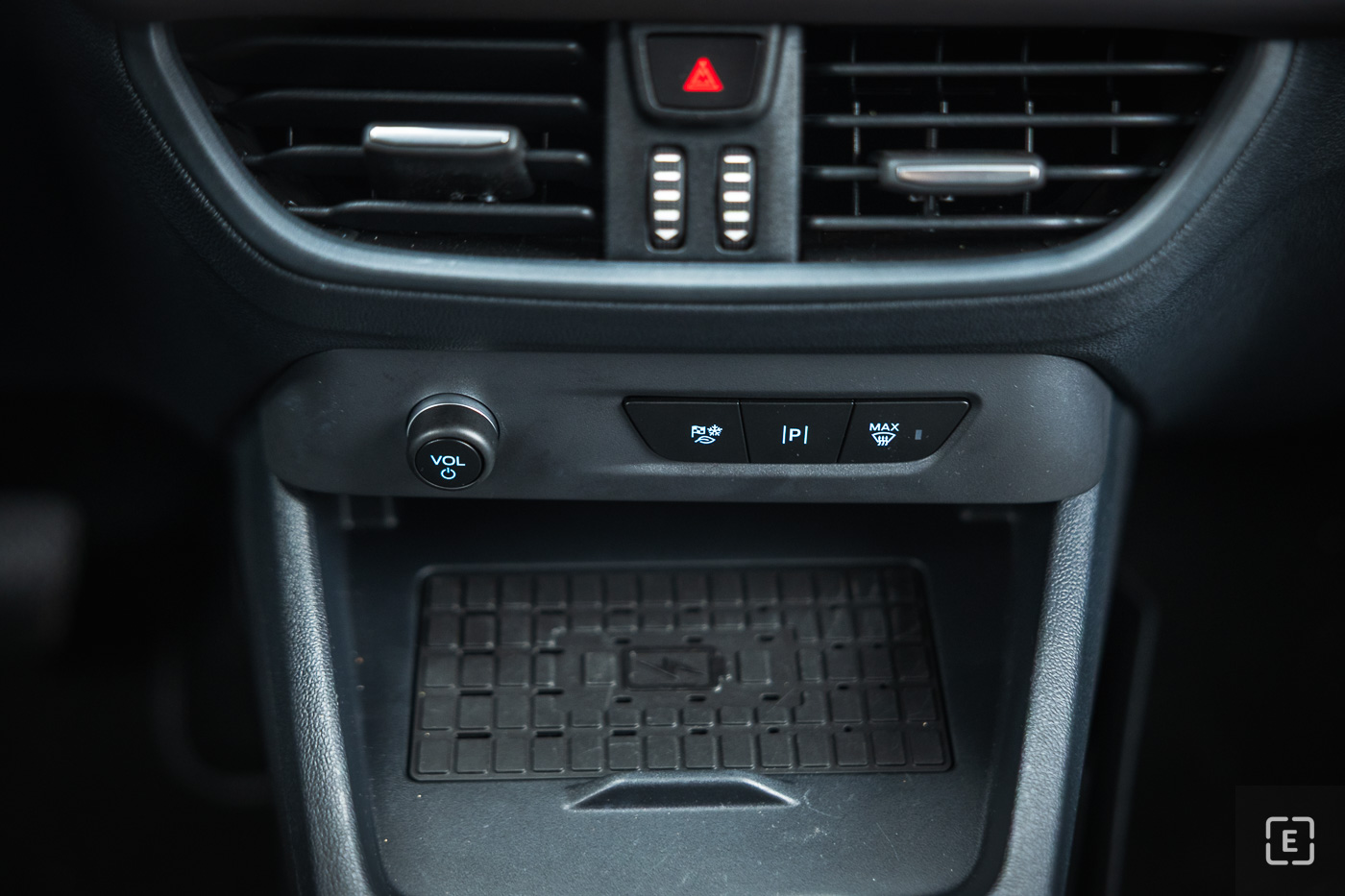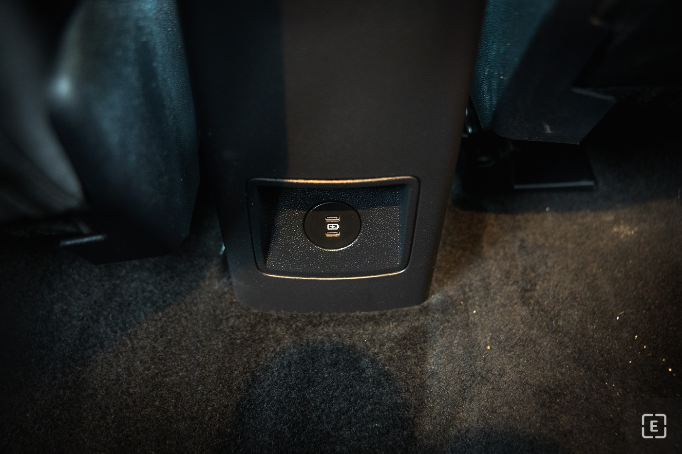 K nim nájdeme zozadu stredového tunela aj 2x USB-C nabíjacie porty. Ďalší je vpredu, spolu s USB-A, ako aj 230 V / 400 W a 12 V zásuvkou. Čerešničkou na torte je bezdrôtová nabíjačka pod výduchmi ventilácie.