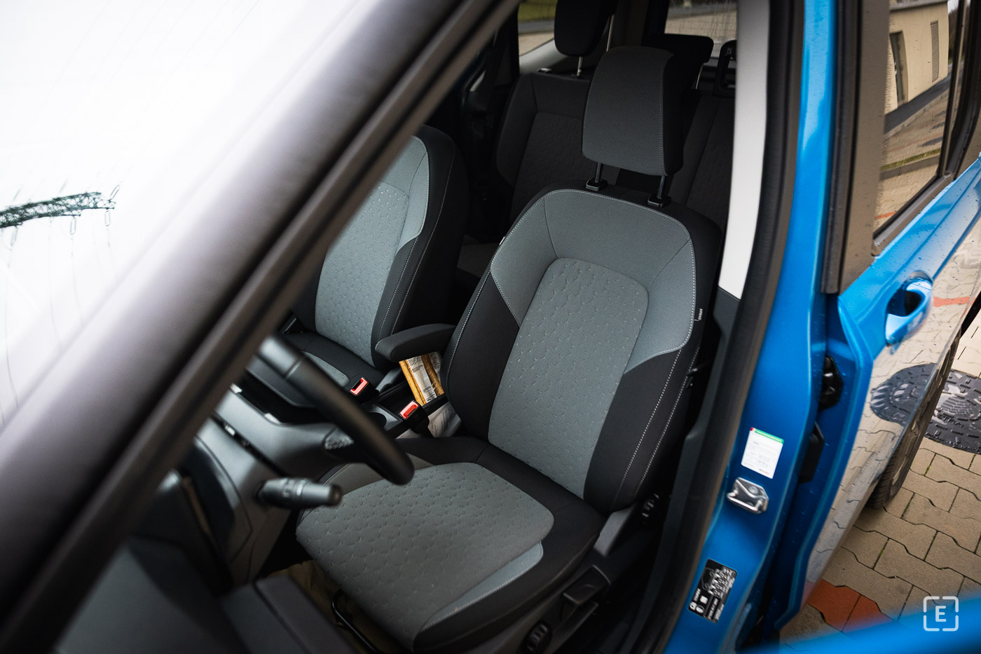 Klasicky príjemný je pri Fordoch volant, ktorý sa veľmi dobre drží. Prekvapí stredová lakťová opierka primontovaná na operadlo vodiča, spolujazdec ju nemá. Aj to však v tomto segmente nie je ojedinelé – v úžitkových verziách sa väčšinou vezie len vodič.
