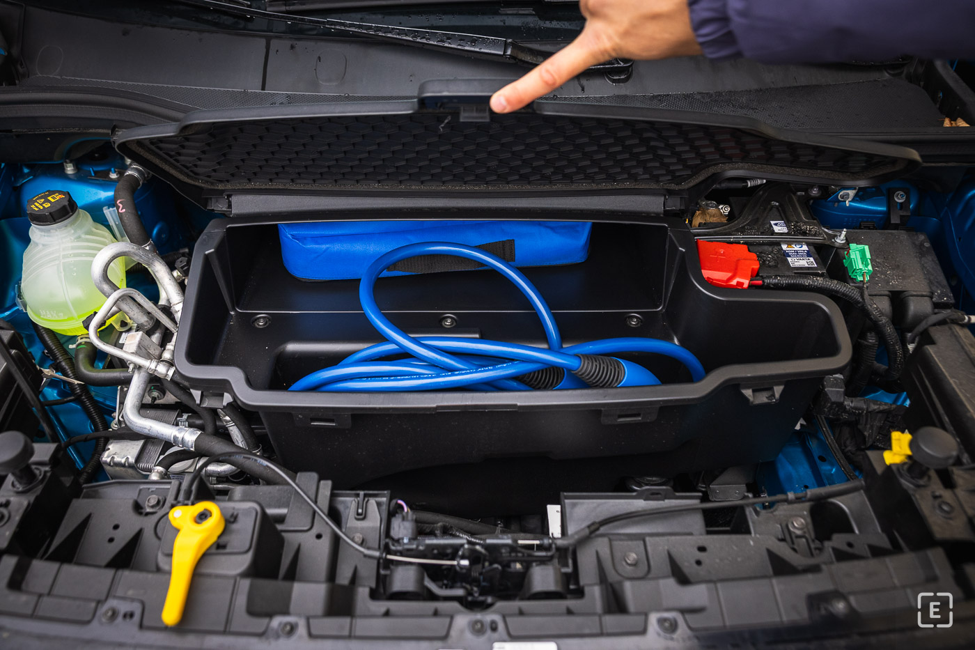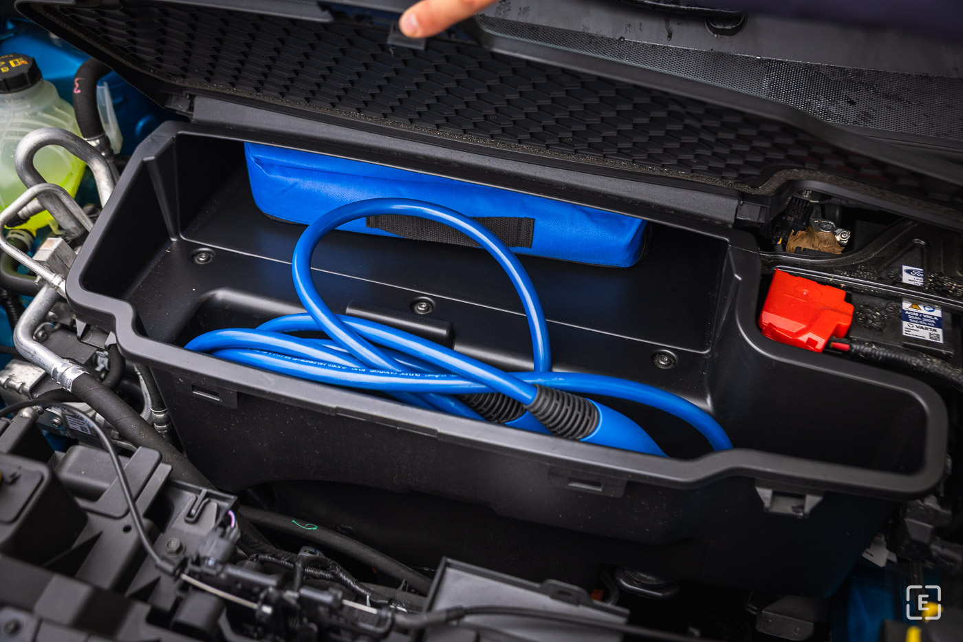 Čo nás ako fanúšikov elektromobility teší, je prítomnosť predného kufra, tzv. frunku aj napriek uloženiu elektromotora vpredu. Frunk má objem 44 litrov a je ideálny na uloženie nabíjacích káblov, ktoré tak nezavadzajú v hlavnom kufri medzi batožinou. Toto je detail, ktorý často chýba aj drahšej konkurencii, či vozidlám s elektromotorom vzadu.