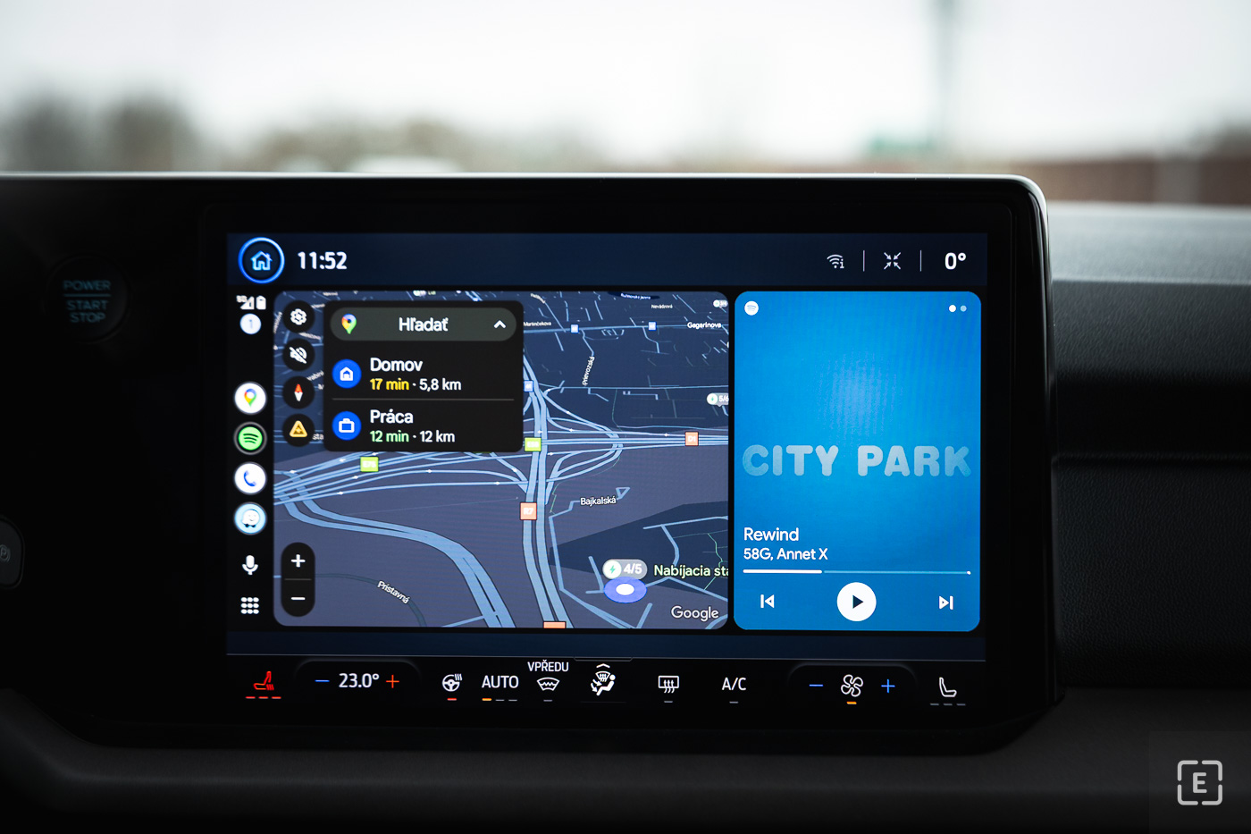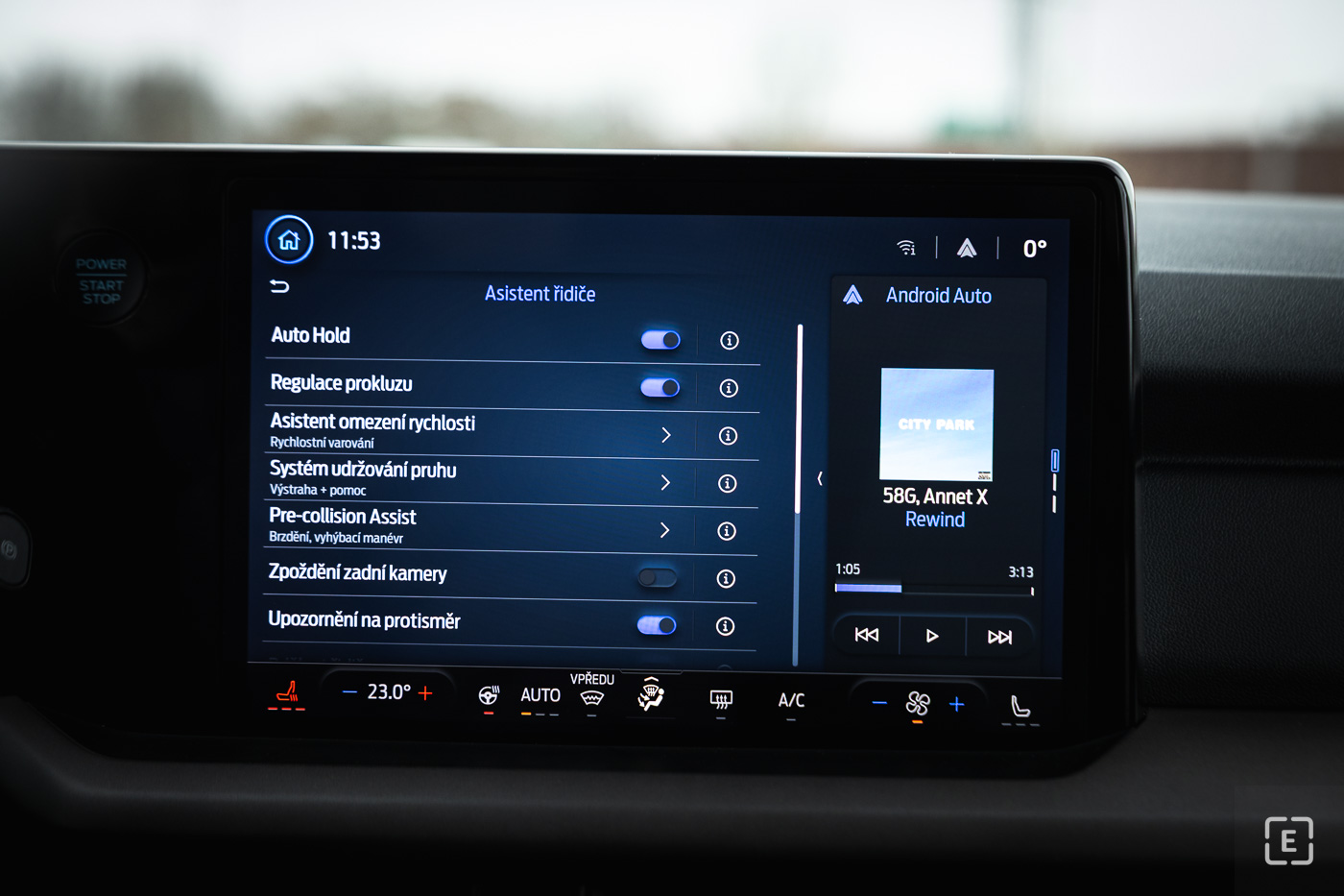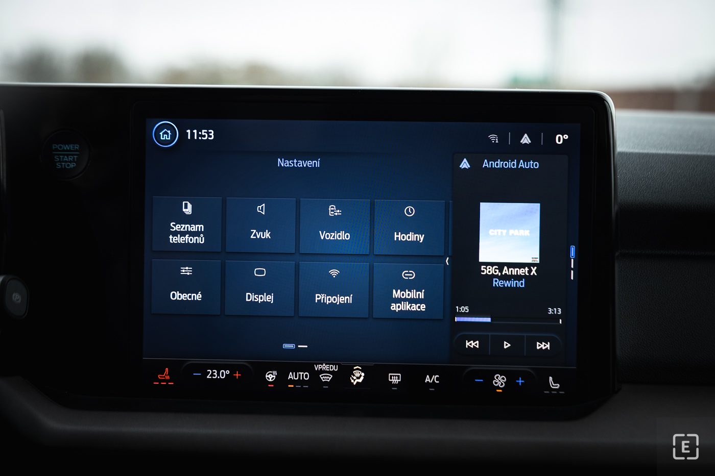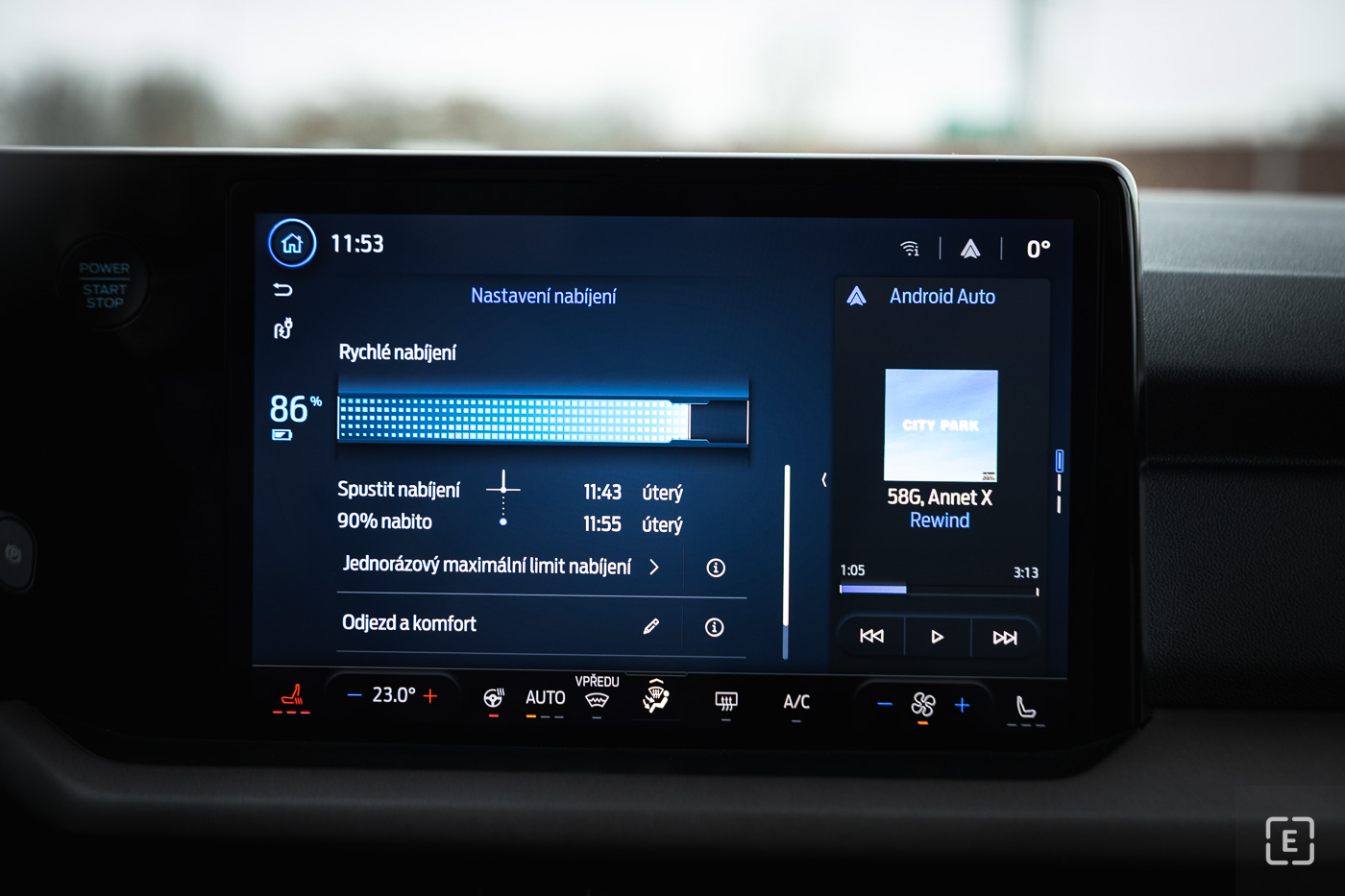 Systém podporuje bezdrôtové Apple CarPlay a Android Auto, čo je v dnešnej dobe nevyhnutnosťou, no v tejto triede nie samozrejmosťou. Bohužiaľ, Ford podľahol modernému trendu a odstránil fyzické ovládanie klimatizácie. Všetko, od teploty až po vyhrievanie sedadiel, sa ovláda cez dotykovú obrazovku, čo si vyžaduje pozornosť vodiča.