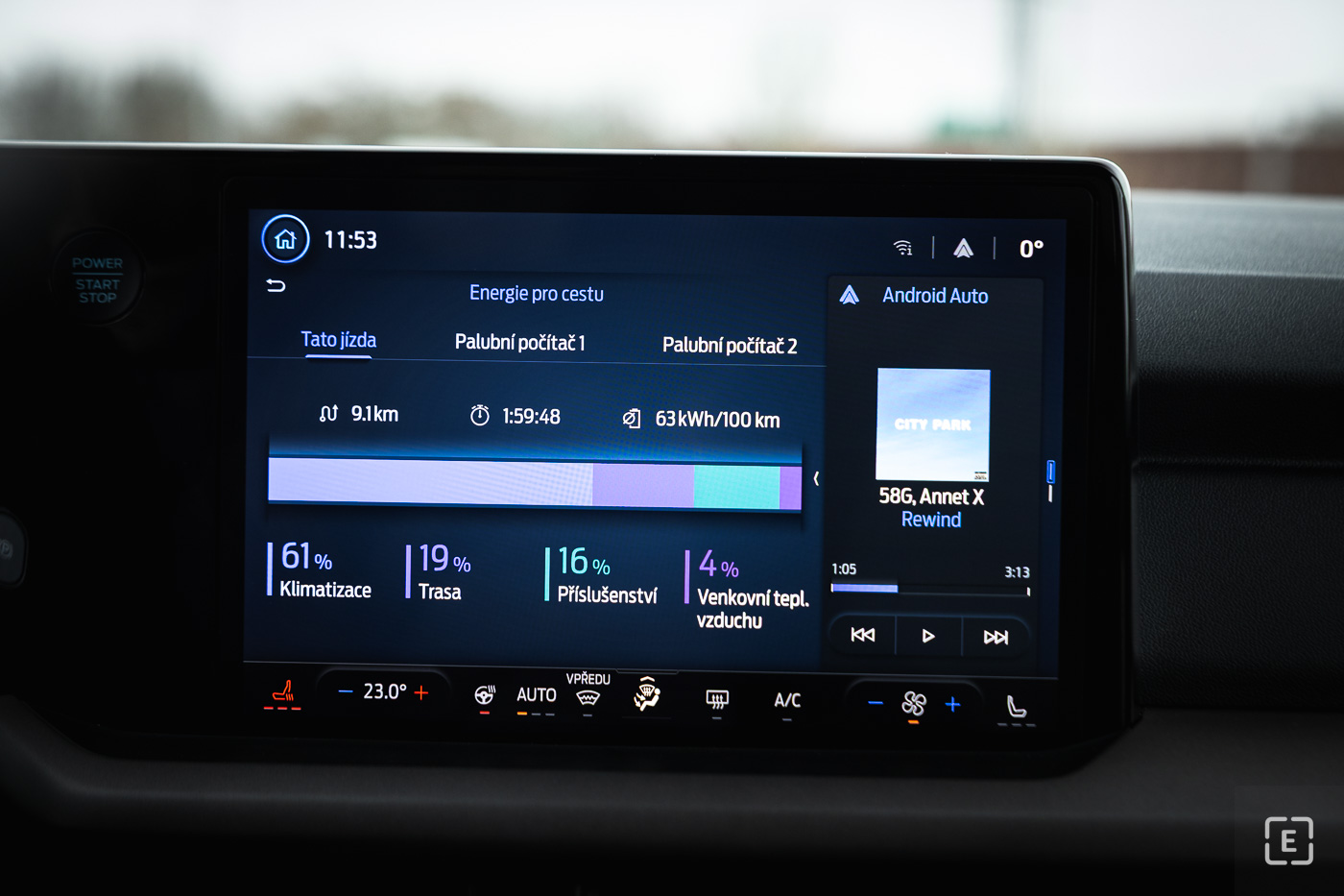 Výrobca udáva pre model Ford E-Tourneo Courier Titanium kombinovanú spotrebu podľa WLTP na úrovni 14,4 kWh / 100 kilometrov a kombinovaný dojazd 287 kilometrov. Aká je však realita, keď do rovnice vstúpi nízka teplota a veľkoobjemová kabína?