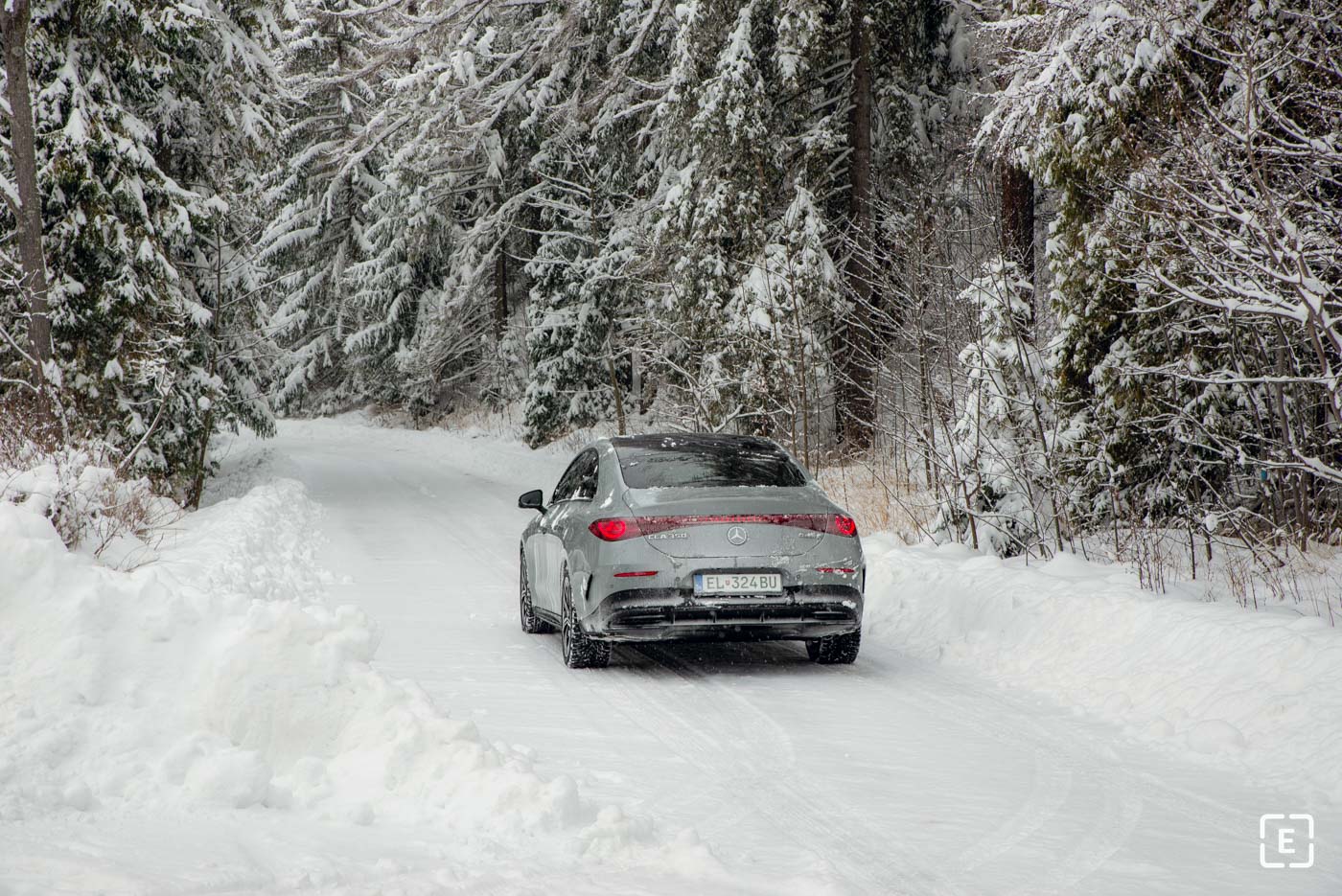Presné dávkovanie výkonu a krútiaceho momentu zaručuje pohon všetkých kolies 4MATIC, ktorý pri elektrických vozidlách vďaka lineárnej charakteristike výkonu a krútiaceho momentu pracuje ešte presnejšie. Vďaka tomu si vozidlo zachováva aj neutrálnu charakteristiku a aj na ujazdenom snehu držal stopu príkladne.
