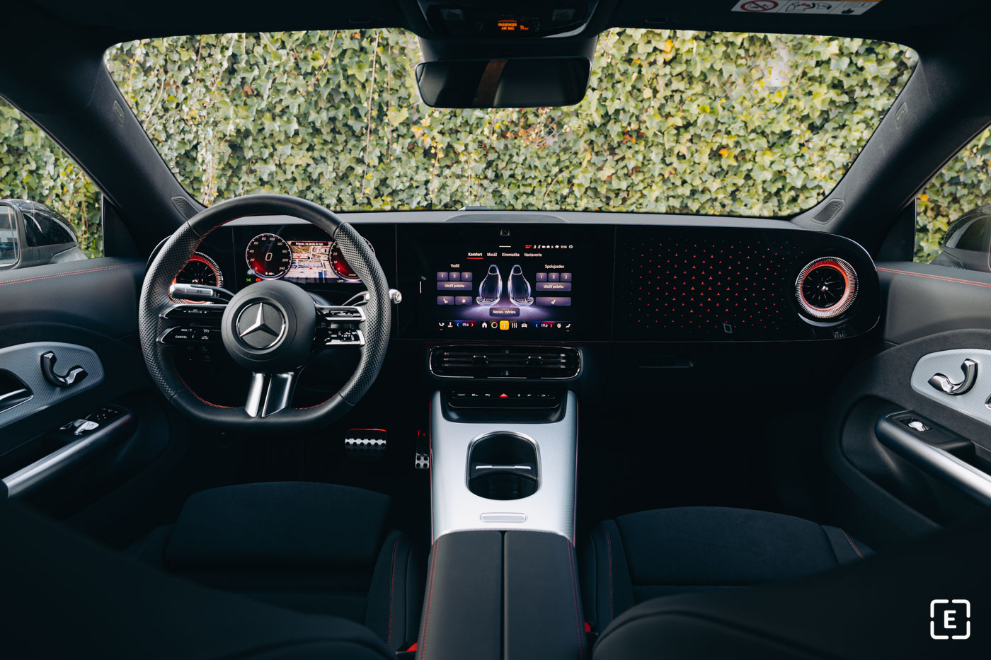 Opačnú situáciu, teda rozpálený hliníkový povrch možno predpokladať v lete pri rozpálenom interiéri cez panoramatické strešné okno. To je súčasťou štandardnej výbavy každého CLA, no bohužiaľ bez možnosti zatemnenia prostredníctvom roletky.