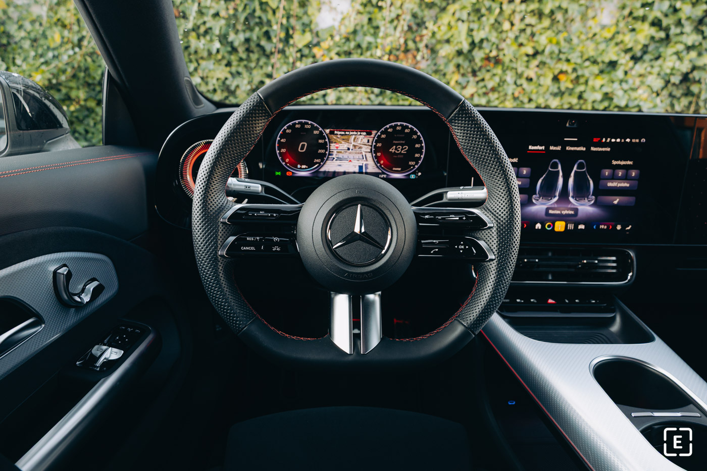 Z hľadiska materiálov a dizajnu interiéru ponúka CLA zmes moderných a udržateľných prvkov, ako sú vegánska koža, brúsený hliník, otvorené pórovité drevo či dekoratívny povrch pripomínajúci papier. Na rozdiel od niektorých iných redakcií nepovažujeme interiér za menej hodnotný – vyhotovenie zodpovedá triede vozidla (CLA), teda netreba očakávať Maybach so 4-násobnou cenou.