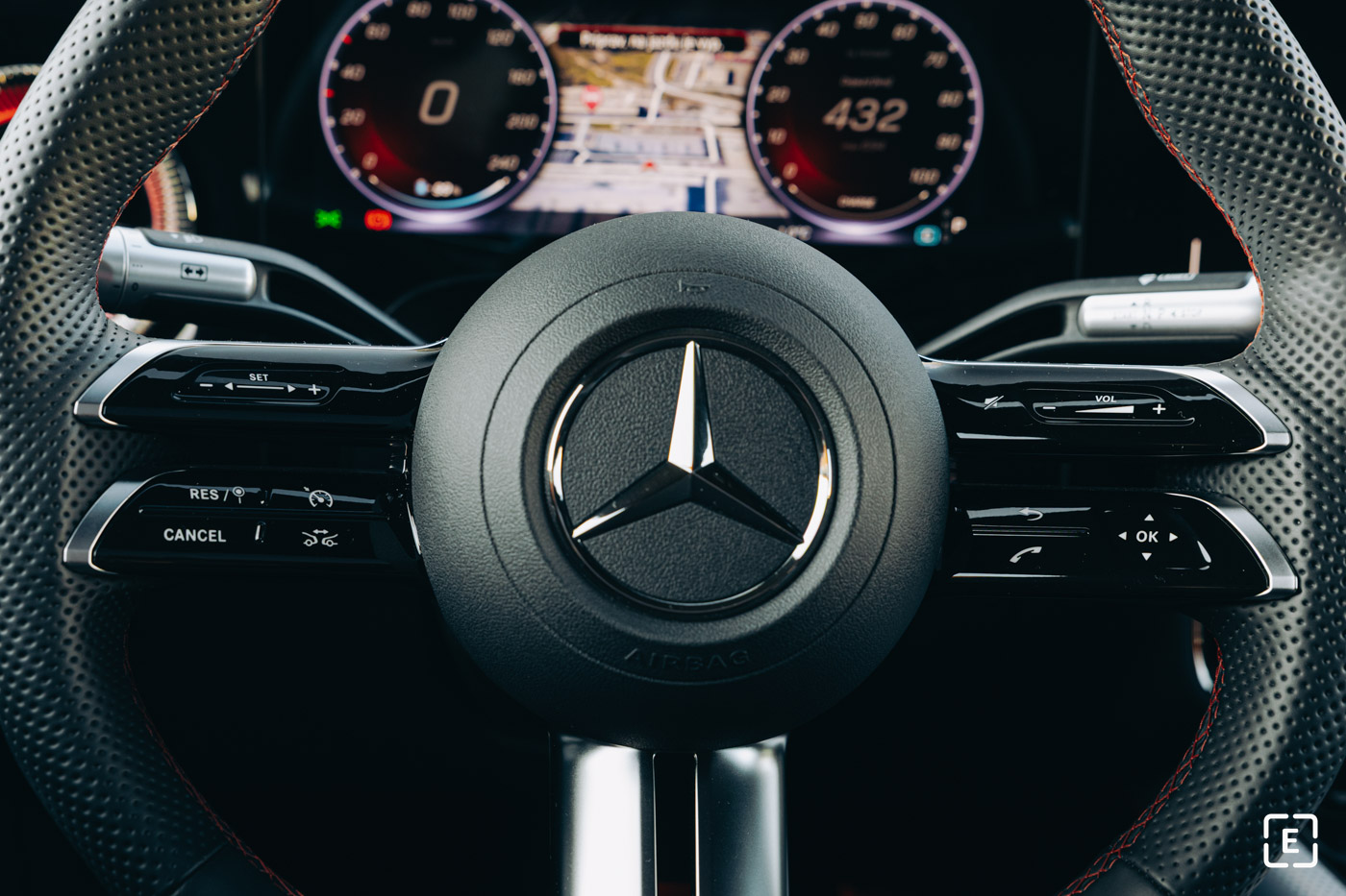 Jedným dychom však dodávame, že tento volant sa bude týkať pravdepodobne len prvého modelového roka. Už v júli sme totiž v predsériovom Shooting braku mali možnosť vidieť ešte novší volant, ktorý v horných ramenách opäť obsahuje prepínače na zvýšenie/zníženie rýchlosti tempomatu, či hlasitosti.