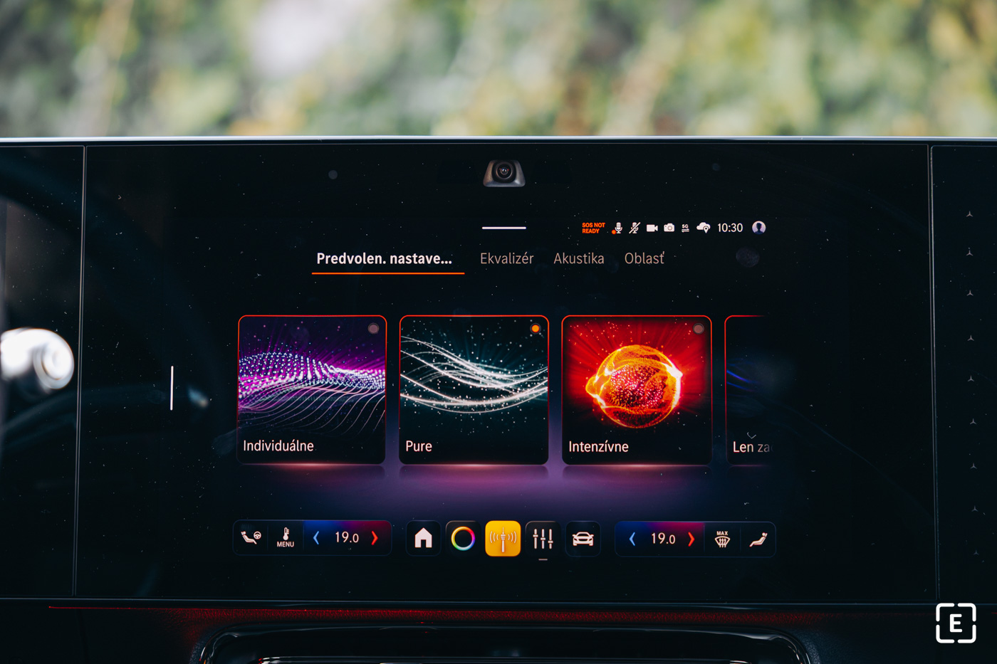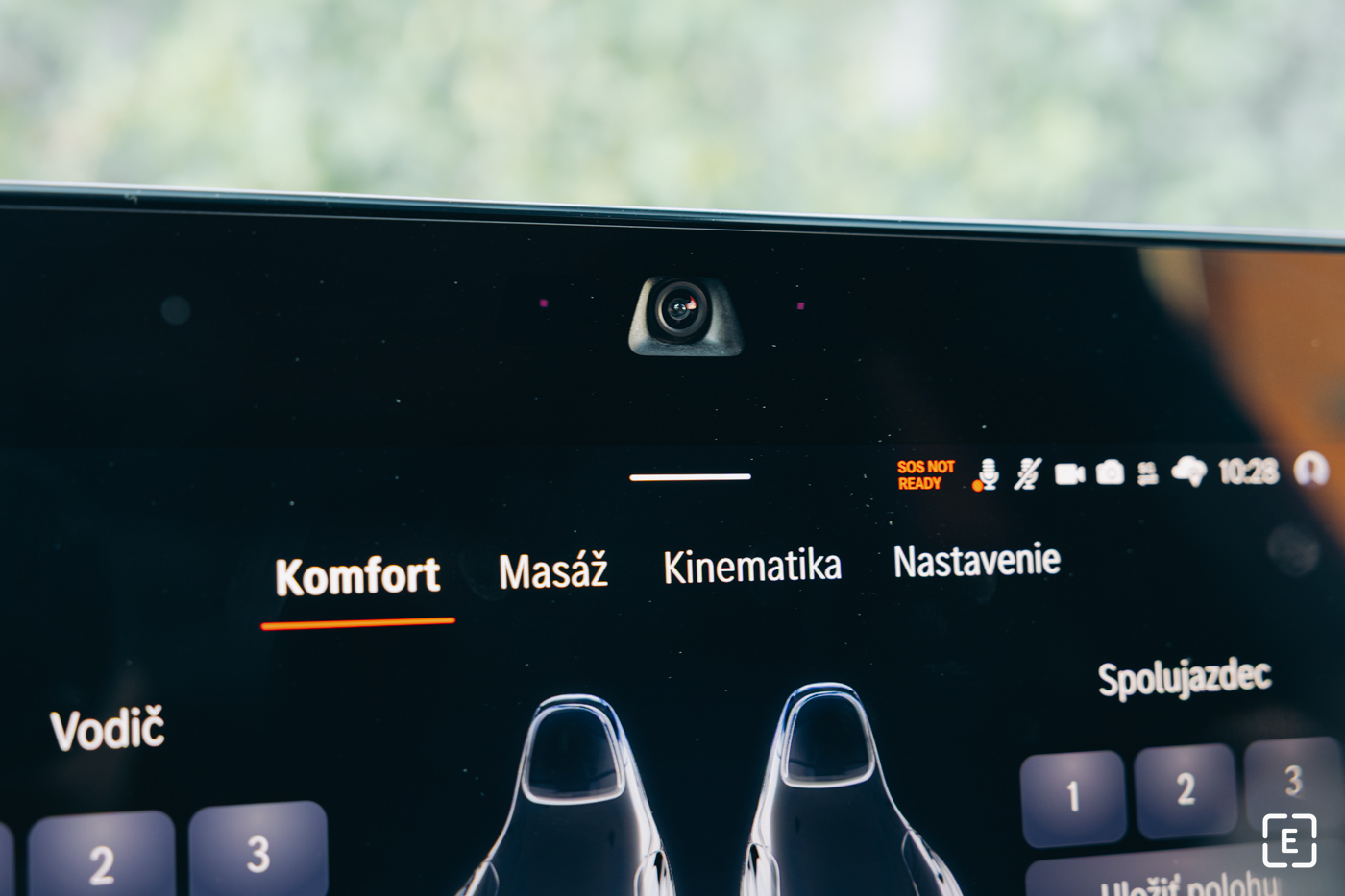 Pokiaľ si zákazník nezvolí verziu s tromi obrazovkami, ako tomu bolo aj v našom prípade, priestor pred spolujazdcom vypĺňa plastový panel s motívom hviezd. Celkové rozloženie obrazoviek pôsobí veľmi futuristicky, pričom ovládanie klimatizácie je plne integrované do dotykového displeja. Súčasťou výbavy je aj kamera na palubnej doske, ktorá umožňuje robiť si selfie alebo sa pripojiť na videokonferenciu, keď je vozidlo zaparkované.