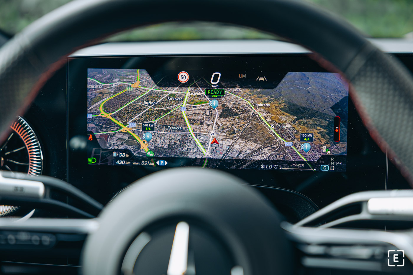 Menič napätia pre 400 V nabíjanie sa údajne v priebehu roku 2026 už bude dať objednať formou príplatkovej výbavy, ako tomu už je napríklad pri novom modeli GLC. Túto opciu dôrazne odporúčame pre každého, a to bez ohľadu na to, či ju ako prvý majiteľ využijete, alebo nie. Auto bez neho môže byť v budúcnosti ťažšie predajné, rovnako prípadné výlety či dovolenky v lokalitách so staršou/slabšou nabíjacou infraštruktúrou môžu byť už pre vás menej komfortné.