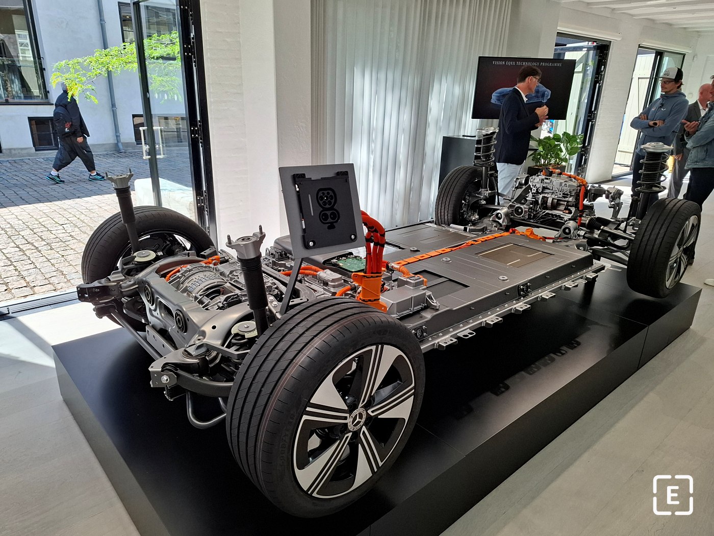 Oproti väčšiemu sedanu EQE s dvomi elektromotormi je tento ľahší o približne 350 kg, čo je poriadne cítiť. Vďaka kratšiemu rázvoru je aj viac hravý a agilný. Ak máte radi dynamickú jazdu, nízky sedan s tuhou karosériou je oproti SUV na ňu neporovnateľne vhodnejší.