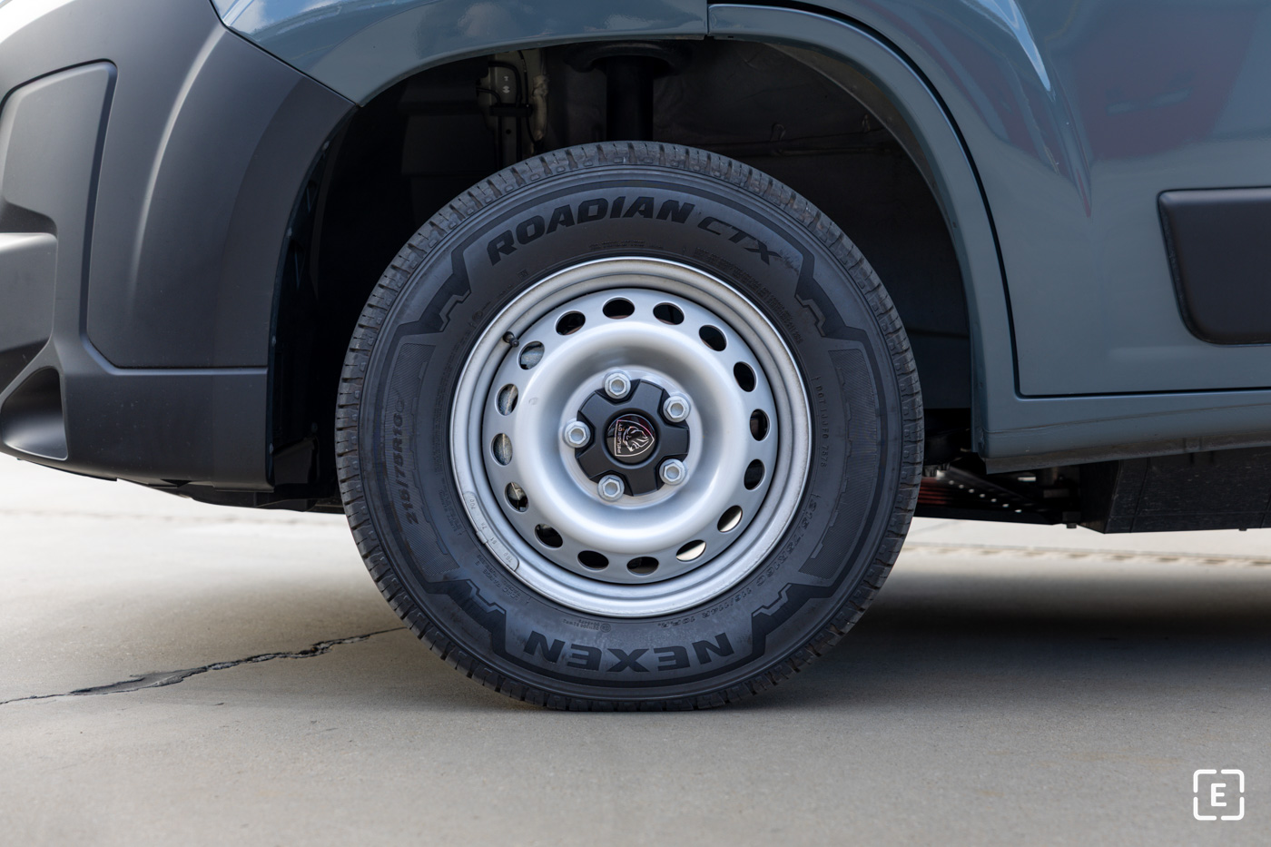Paradoxne výhoda vyššej prevádzkovej hmotnosti je komfortnejšie odpruženie. Keďže už prázdne auto váži takmer 2,8 tony; nepociťujeme tu poskakovanie typické pre spaľovacie dodávky pri jazde bez nákladu.