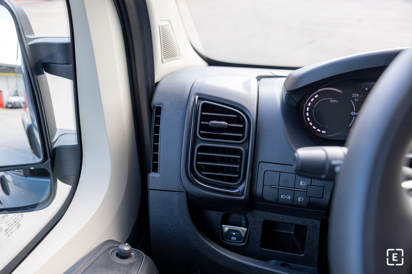 Nami testované vozidlo bohužiaľ neponúkalo komfortné prvky ako vyhrievanie sedadiel, volantu, či čelného skla. Na tie sme si už zvykli v Mercedese, Renaulte aj Forde a hlavne v chladných ránach by sme ich uvítali aj tu. Pri výslednej cene elektrickej dodávky je príplatok za tieto prvky naozaj zanedbateľný.