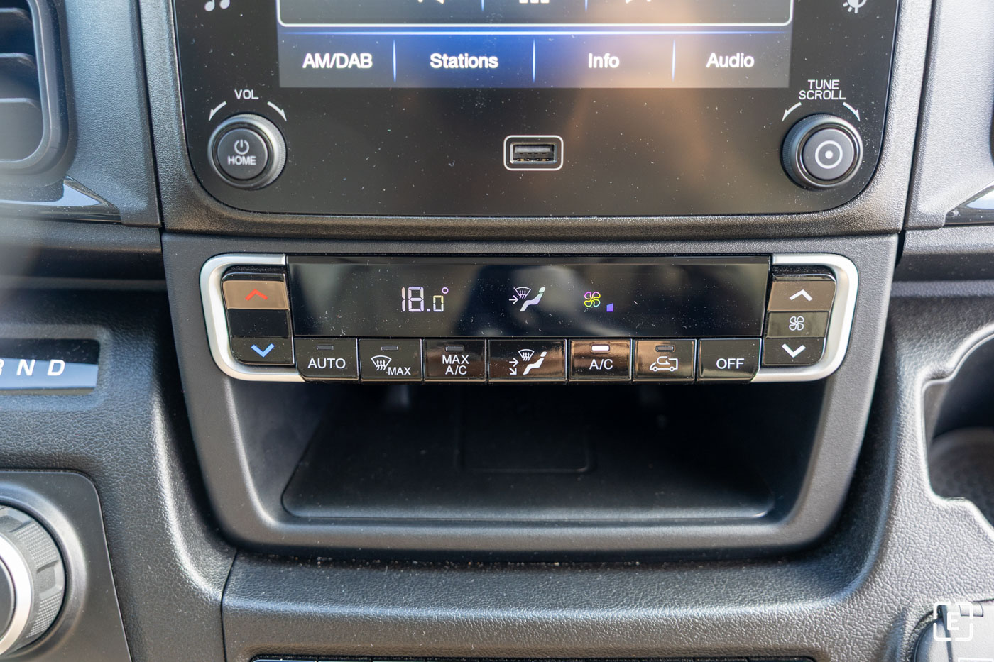 Naopak panel digitálnej klimatizácie vyzerá hodnotne. Ponúkne aj intuitívnu logiku ovládania. Okrem USB zásuvky tu nájdeme aj klasickú 12 V.