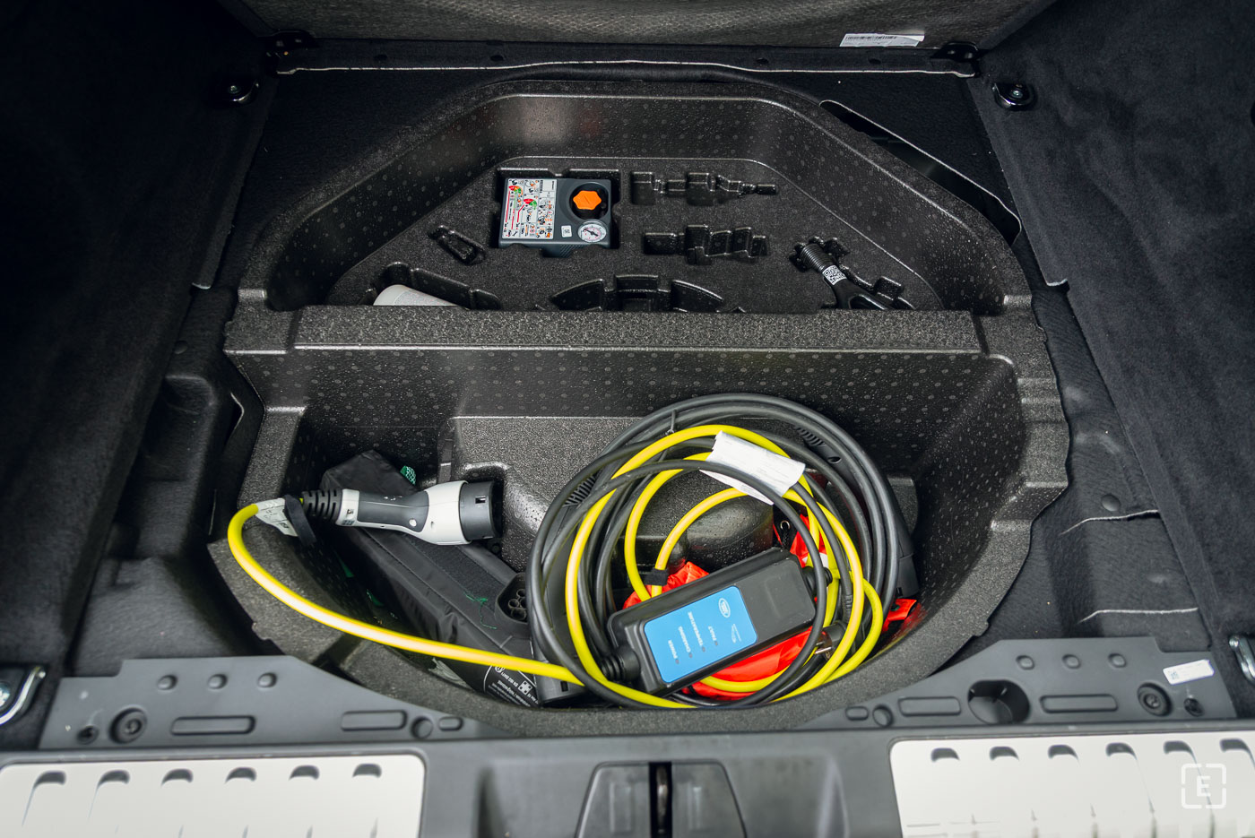 Pod podlahou sa dokonca nachádza miesto pre rezervné koleso, čo je pri plug-in hybridoch rarita. V kufri nechýbajú tlačidlá na zníženie nakladacej hrany pomocou vzduchového podvozka.