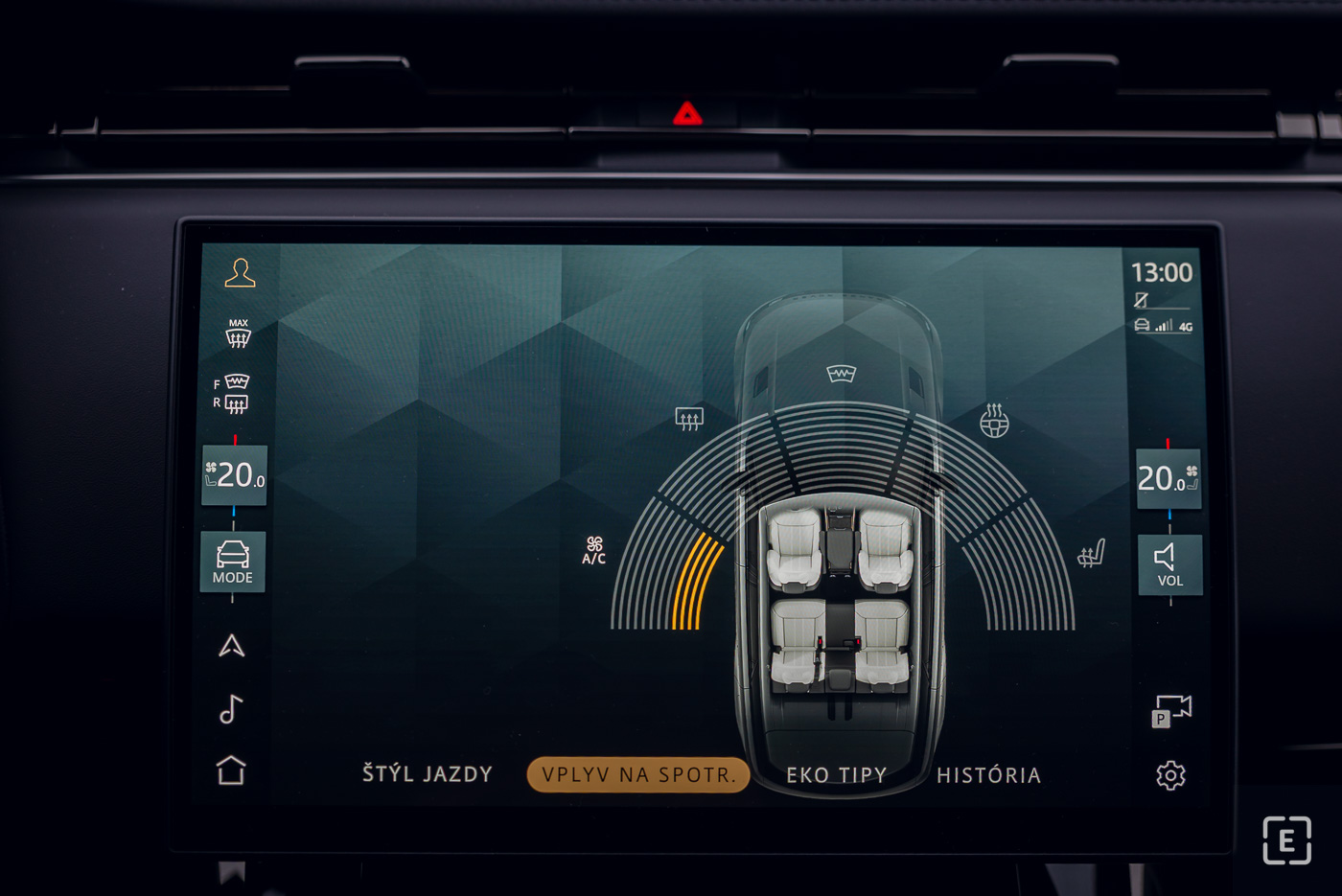 Centrom diania je zakrivený 13,1-palcový dotykový displej infotainmentu. Systém je graficky vydarený a rýchly, no ergonomickým krokom späť je odstránenie fyzických ovládačov klimatizácie. Nastavenie teploty či vyhrievania sedadiel teraz vyžaduje preklikanie sa cez menu na displeji, čo odpútava pozornosť od šoférovania.