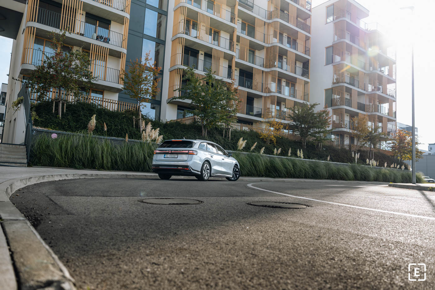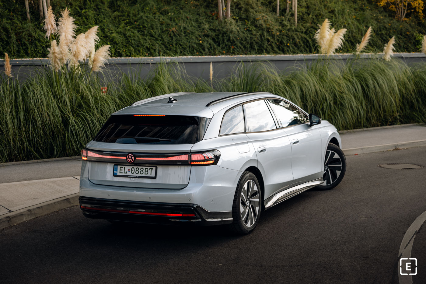 Exteriéru vozidla sa podrobnejšie venovať nebudeme, nakoľko sme už v minulosti podrobne otestovali Volkswagen ID. 7 liftback aj kombi s označením Tourer, oba s menším akumulátorom. Pripomenieme len veľmi dobrý koeficient odporu vzduchu (cx = 0,25 pre kombi, resp. 0,23 pre liftback), ktorý má spolu s nízkou nábehovou hranou prednej časti veľký podiel na nízkej spotrebe a dlhom dojazde vozidla.