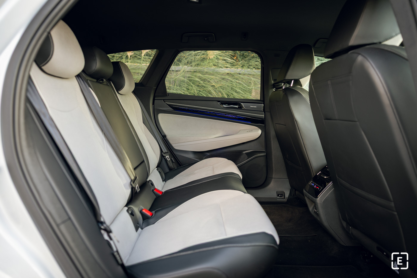 Jazdné vlastnosti a komfort ale mierne utrpeli na vrub vyššej hmotnosti verzie s najväčším akumulátorom. Vozidlo je pocitovo ťažšie, má väčšie zotrvačné sily. Na rozbitej ceste podvozok napriek menším 19-palcovým kolesám netlmí nerovnosti práve s gráciou, paradoxne verzia s menšou baterkou sa podľa nás správala pokojnejšie.