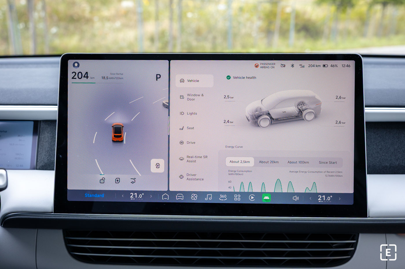 Dojazd výrobca v tejto verzii udáva na pekných 550 kilometrov podľa WLTP. Aj tentokrát sme sa samozrejme pozreli, či je to pravda, a v akých situáciách sa dá takéhoto čísla dosiahnuť. Okrem štandardnej jazdy po Bratislave sme auto vytiahli aj na náš testovací prímestský okruh, mimo mesta či na dlhšiu diaľničnú cestu do Prahy. Len pre informáciu, do Prahy sme šli plne naložení aj v kufri a celkovo sa v aute nachádzalo 5 dospelých osôb.