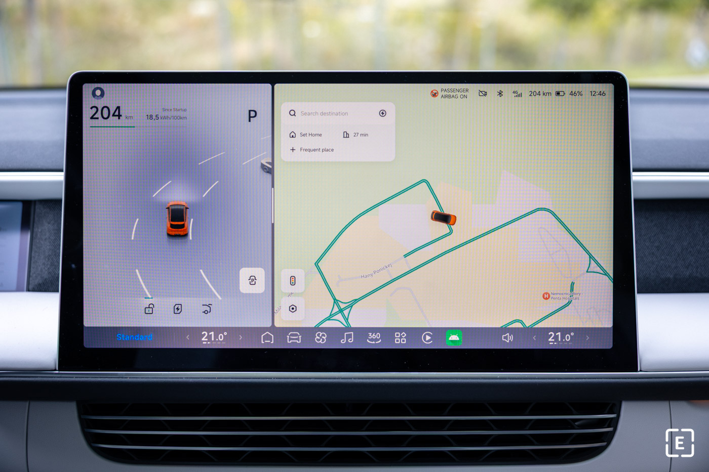 Potešil ma aj vyhrievaný volant spolu so sedačkami, keďže začiatkom októbra pri testovaní bola vonkajšia teplota ako na hojdačke. Takmer všetko sa ovláda pomocou stredového hlavného displeja, ktorý do seba schoval všetky tlačidlá. Viem si predstaviť, že pre niekoho takéto ovládanie môže byť spočiatku mätúce, veď bolo aj pre mňa, kým som si naň zvykol. Okrem neho tu máme aj displej vodiča, ktorý zobrazuje podstatné informácie, no prišiel mi trošku nezaujímavý. Najmä, ak to porovnám napríklad s displejmi od Mercedesu či BMW. Nechýba ani bezdrôtová podpora Android Auto a Apple CarPlay.