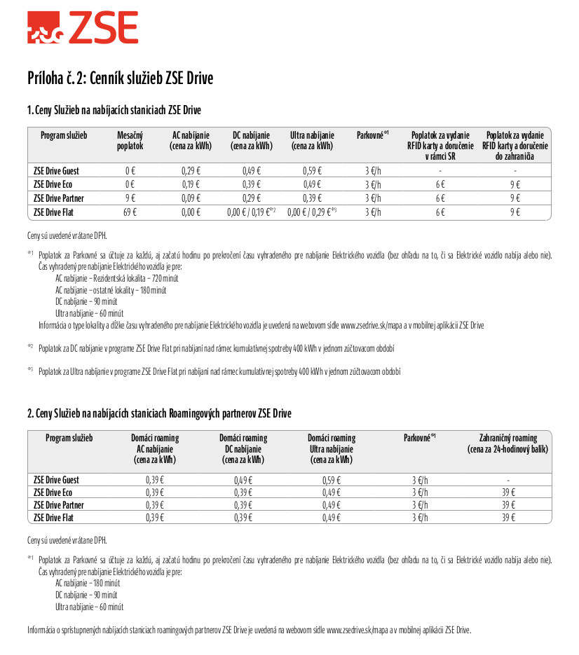 Prevádzkovateľ siete nabíjacích staníc ZSE Drive mení od 1. augusta svoj cenník. Ten zasahuje najmä balík ZSE Partner, pre ktorý sa mení cena AC nabíjania. Zároveň však došlo k zmene dĺžky bezplatného parkovania.